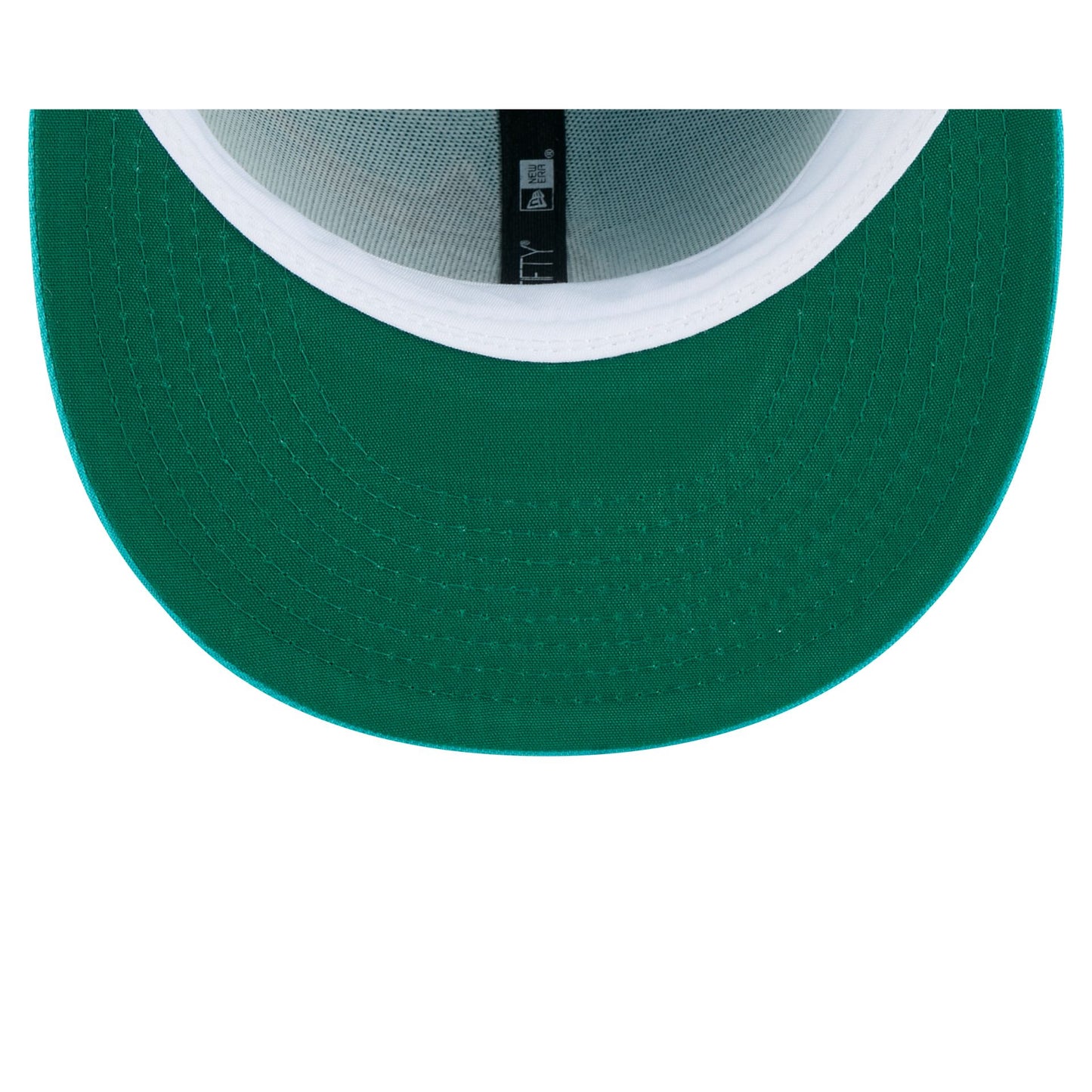 The Miami Marlins Hall of Fame 2025 59FIFTY Fitted Cap features an embroidered Marlins Cooperstown logo at the front panels with a matching MLB Batterman logo at the rear, a National Baseball Hall of Fame patch at the right-wear side, and a green undervisor.
