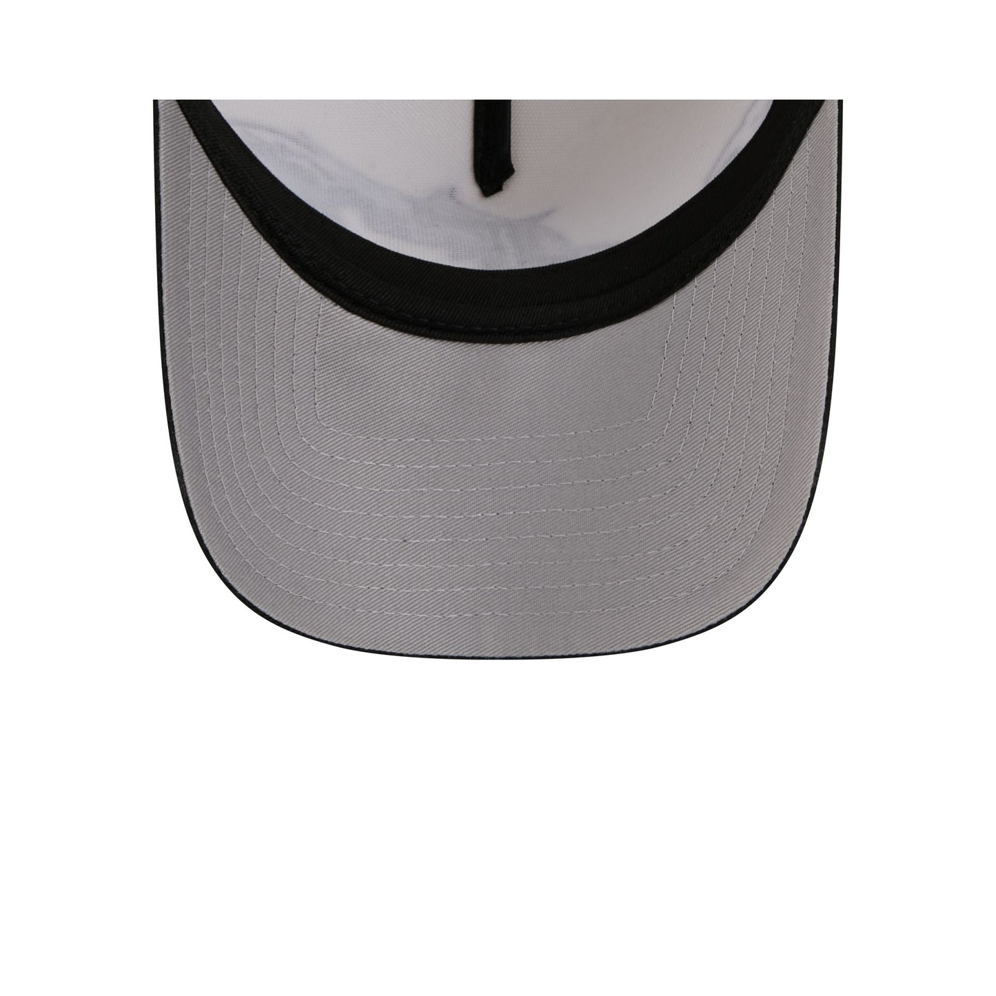The Miami Marlins Tidal Flow 9FORTY A-Frame Snapback features an embroidered Marlins Cooperstown logo at the front panels with tidal waves throughout the cap. Additional details include an adjustable snapback closure at the rear and a gray undervisor.