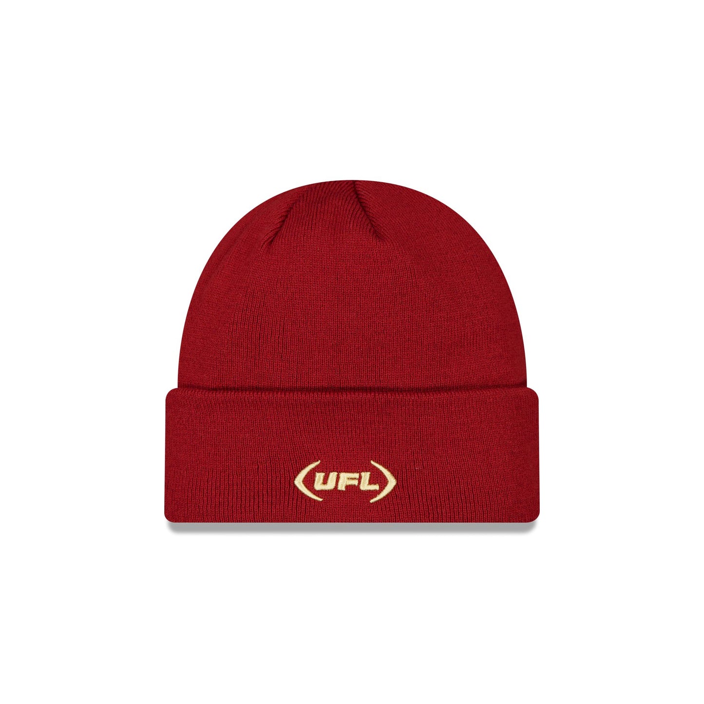 The Michigan Panthers Red Cuff Knit Beanie features an embroidered Panthers logo at the front cuff with a UFL logo at the rear.