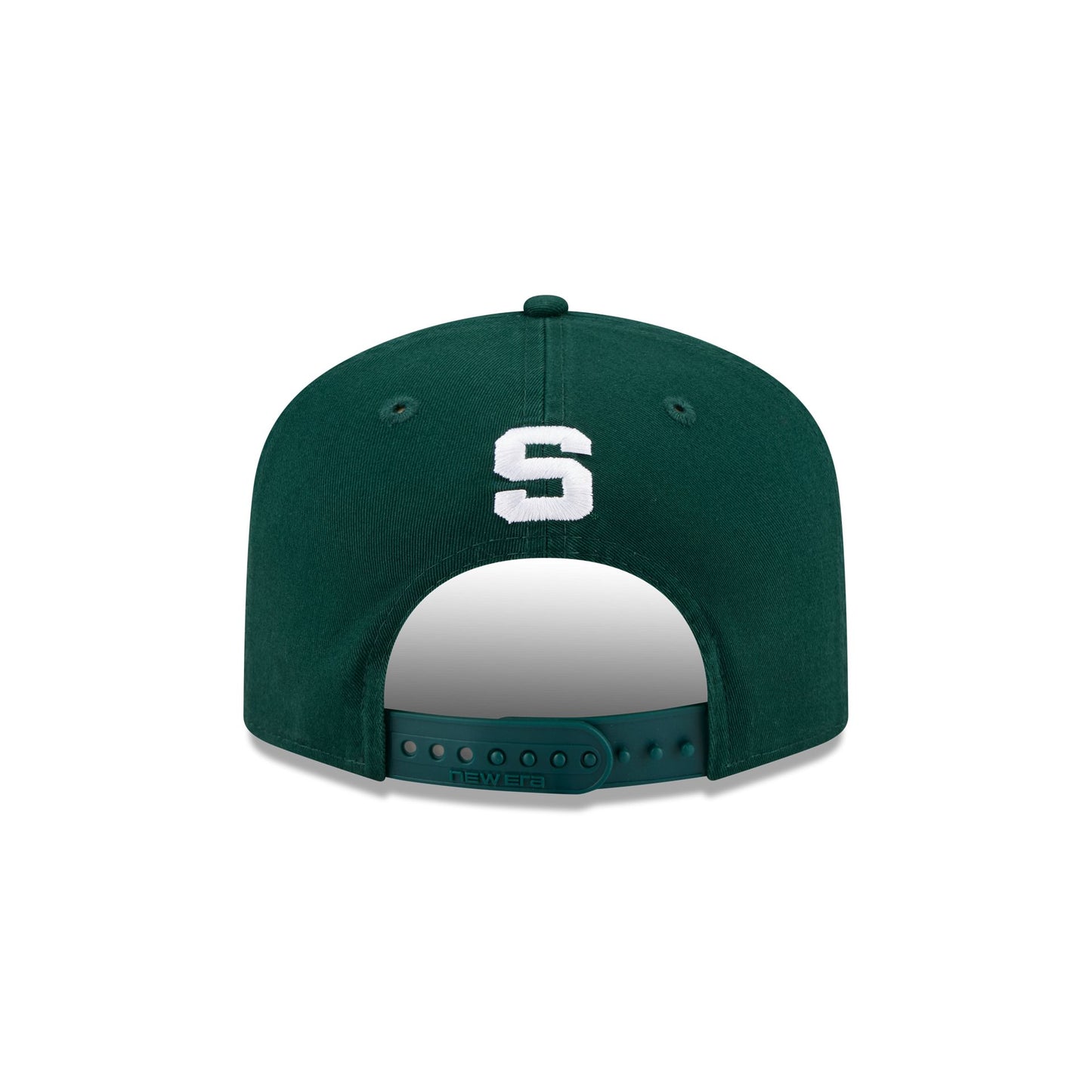 The Michigan State Spartans 19TWENTY Snapback features an embroidered Spartans logo at the front with an alternate team logo above a snapback closure at the rear and a gray undervisor.