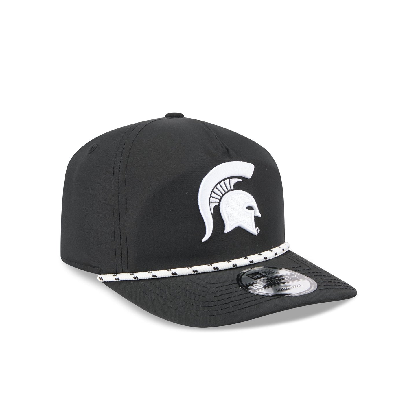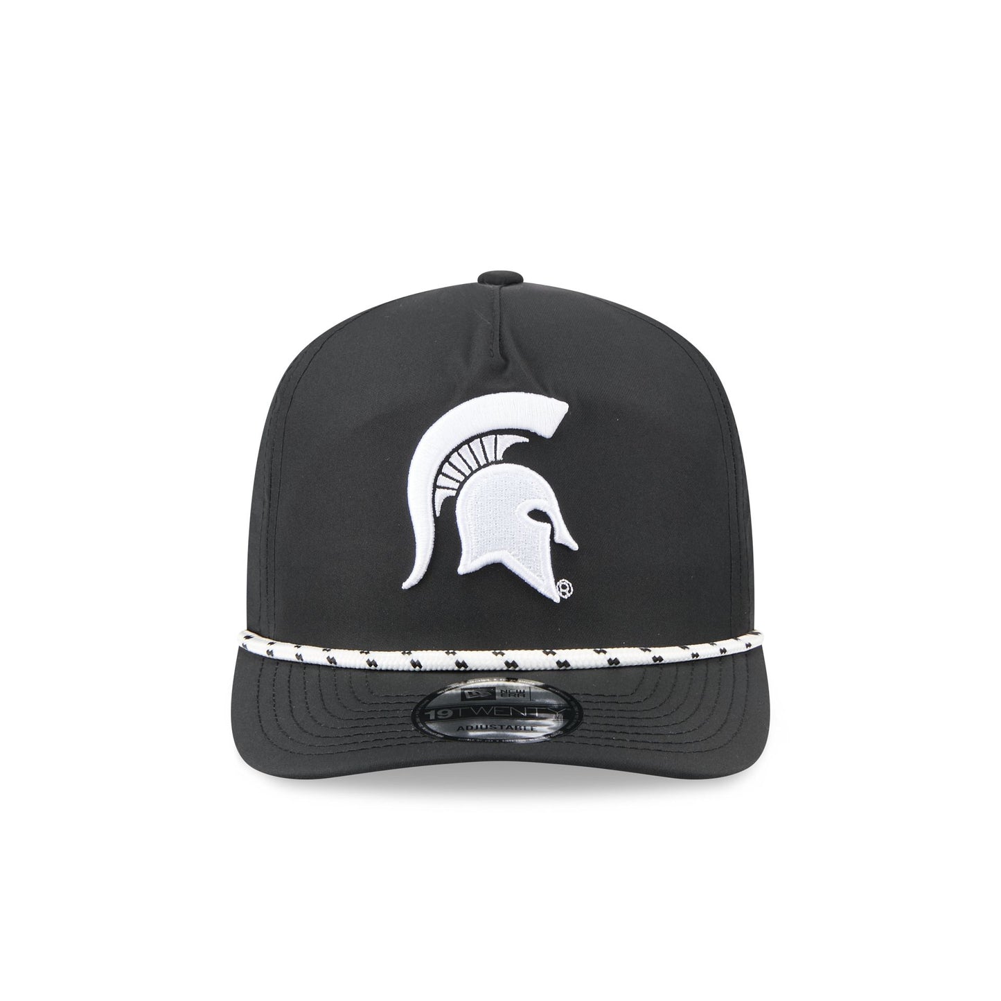 The Michigan State Spartans Black and White Rope 19TWENTY Snapback features an embroidered Spartans logo and rope at the front with a snapback closure at the rear and a gray undervisor.