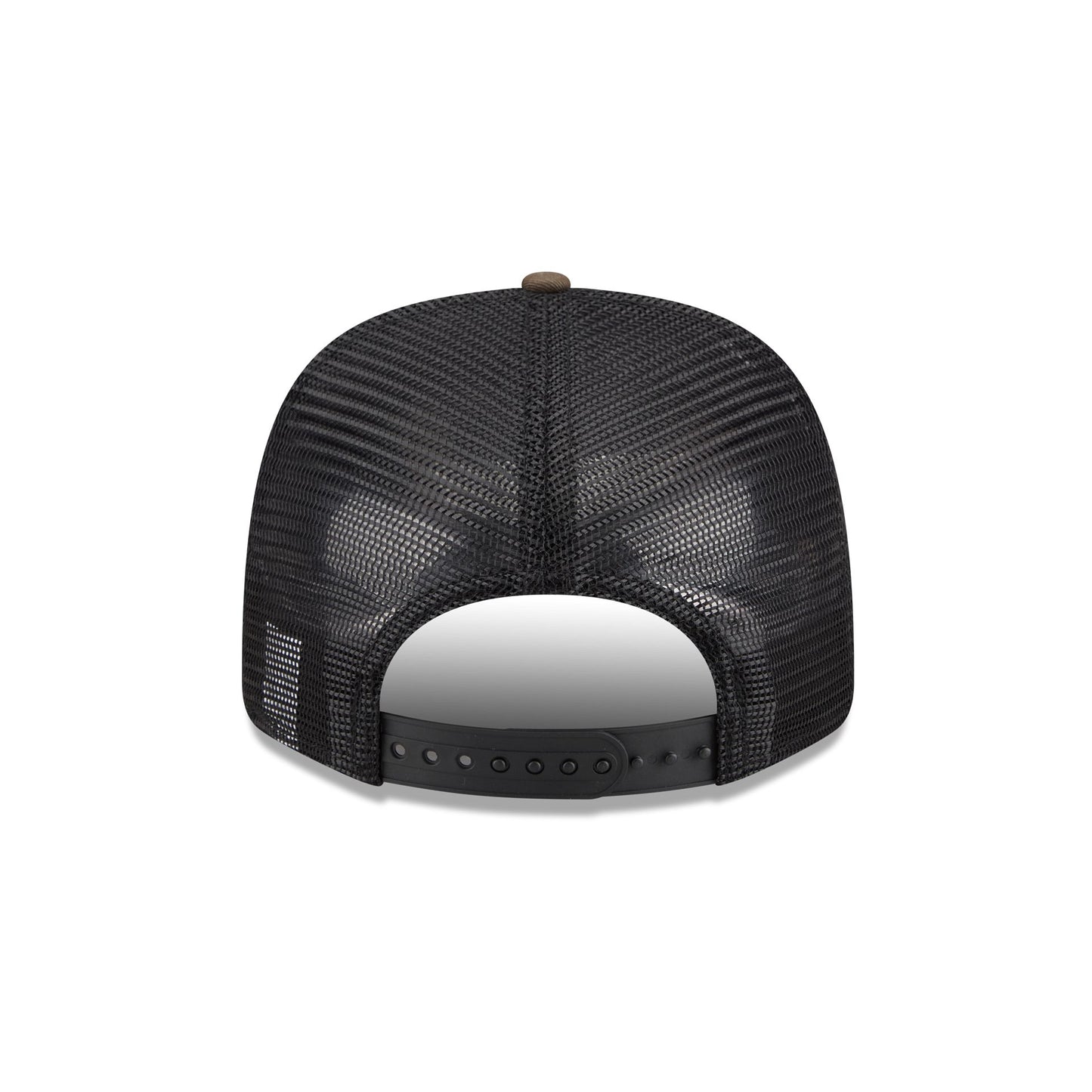 The Michigan State Spartans Camo Canvas 9SEVENTY Trucker features a woven faux leather Spartans patch at the front panels against a camo pattern. Additional details include an adjustable stretch-snap closure at a mesh rear and a gray undervisor.