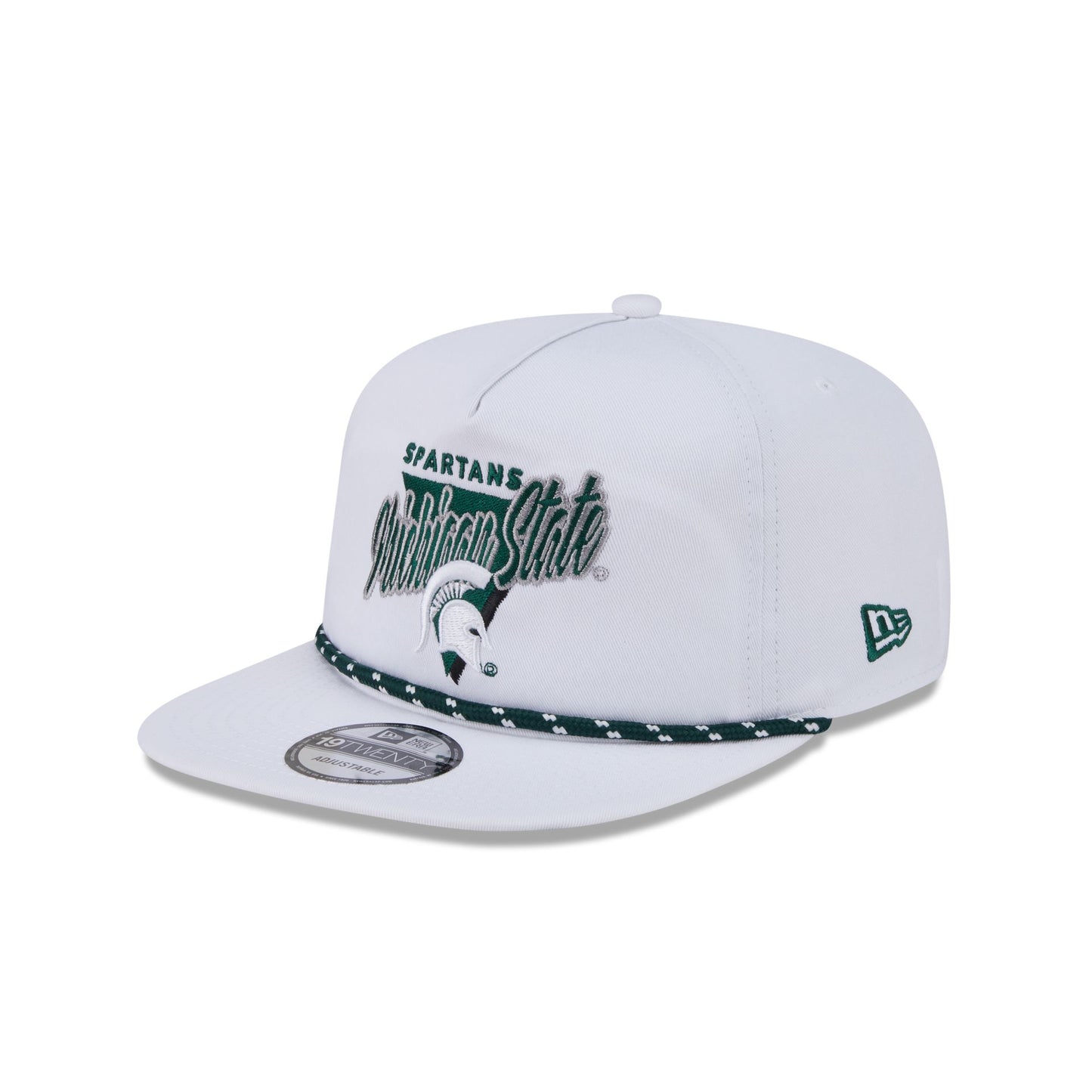 The Michigan State Spartans Collegiate White 19TWENTY Snapback features an embroidered Spartans logo and wordmark at the front panel with an adjustable snapback closure at the rear and a white undervisor.