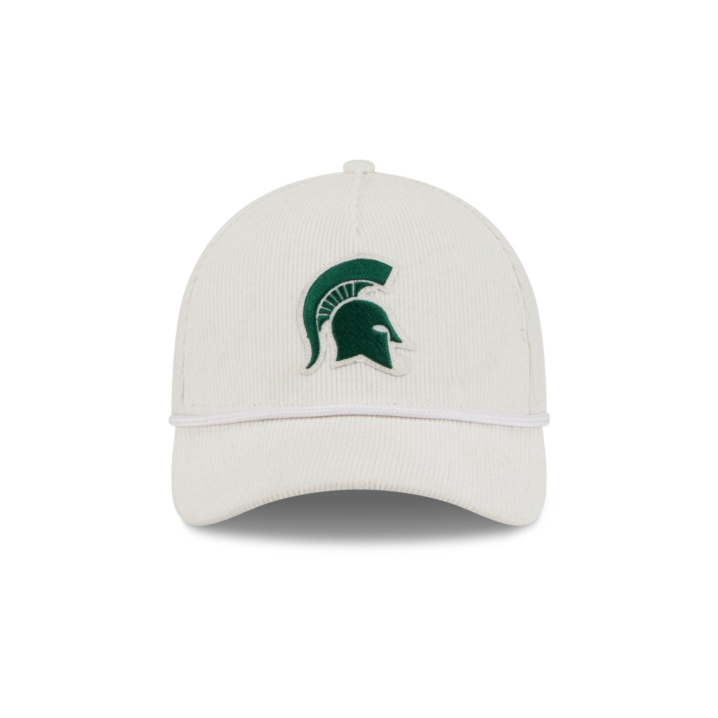 The Michigan State Spartans Corduroy 9FORTY M-Crown A-Frame Snapback features an embroidered Spartans logo at the front panels with a corduroy fabrication throughout and a rope at the visor. Additional details include a snapback closure at the rear and a gray undervisor.