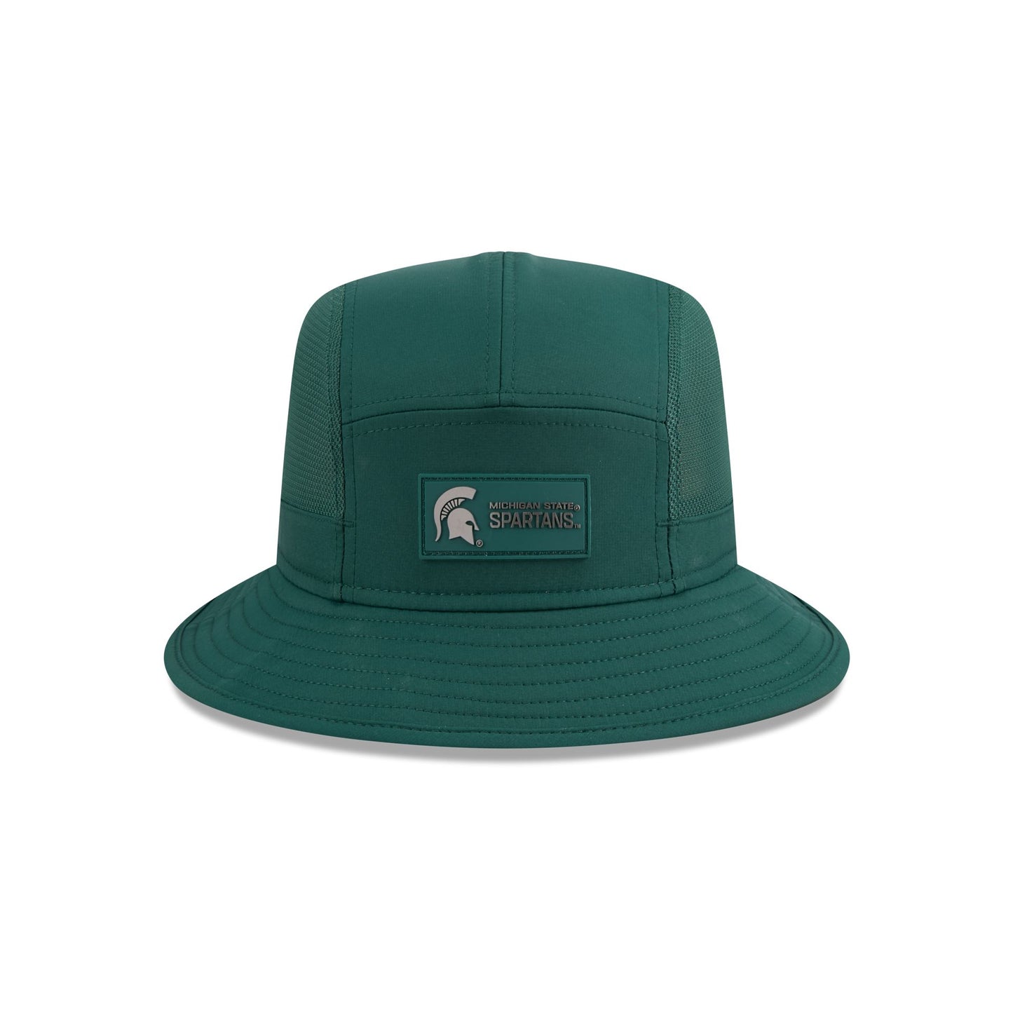 The Michigan State Spartans Hot Weather Stretch Bucket features a sewn-down silicone Spartans logo patch at the front with breathable mesh side panels and an adjustable reflective drawstring at the rear.