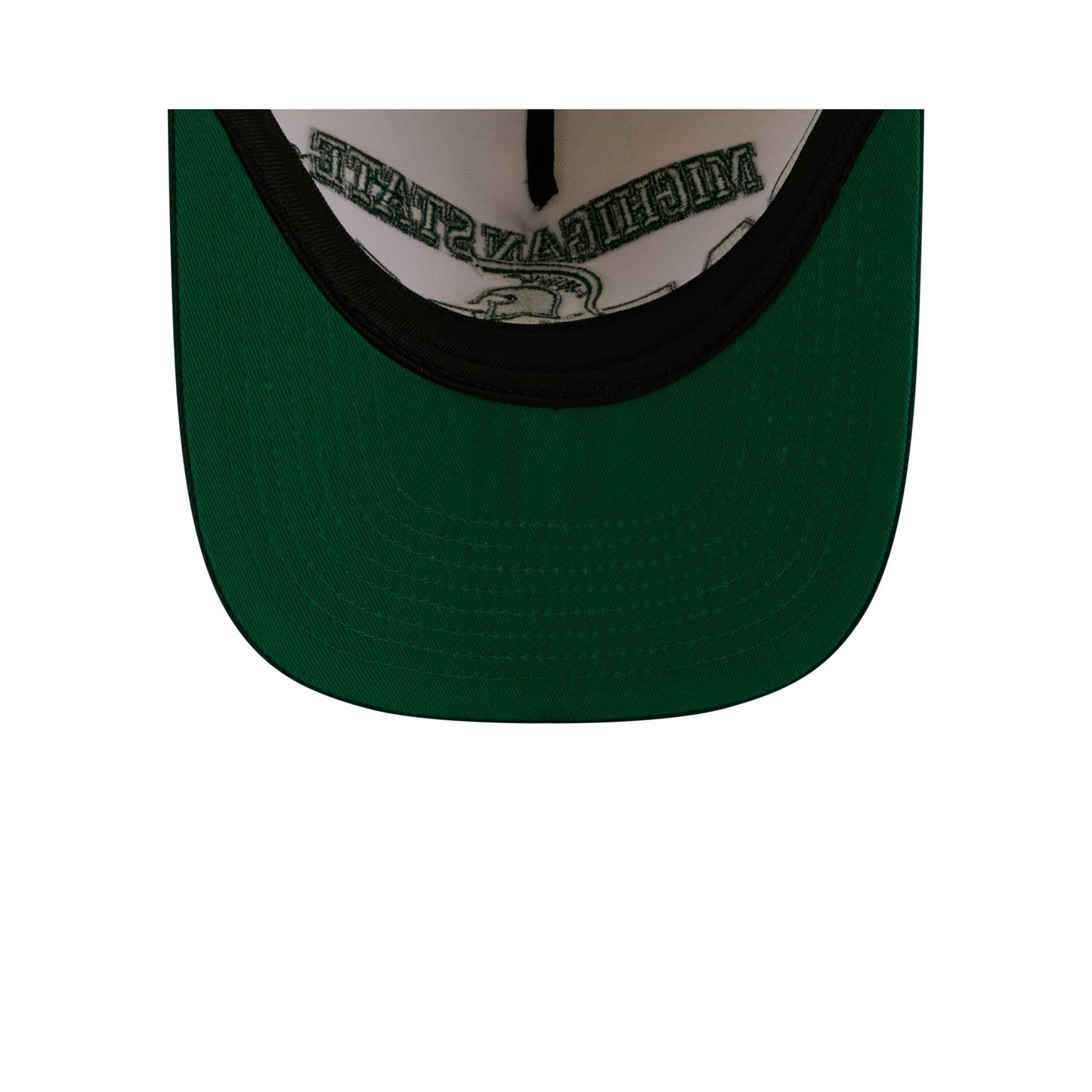 The Michigan State Spartans March Madness Chrome 9FIFTY A-Frame Snapback features an embroidered Spartans logo and wordmark across the front panel with an adjustable snapback closure at the rear, a dark green visor, and a green undervisor.