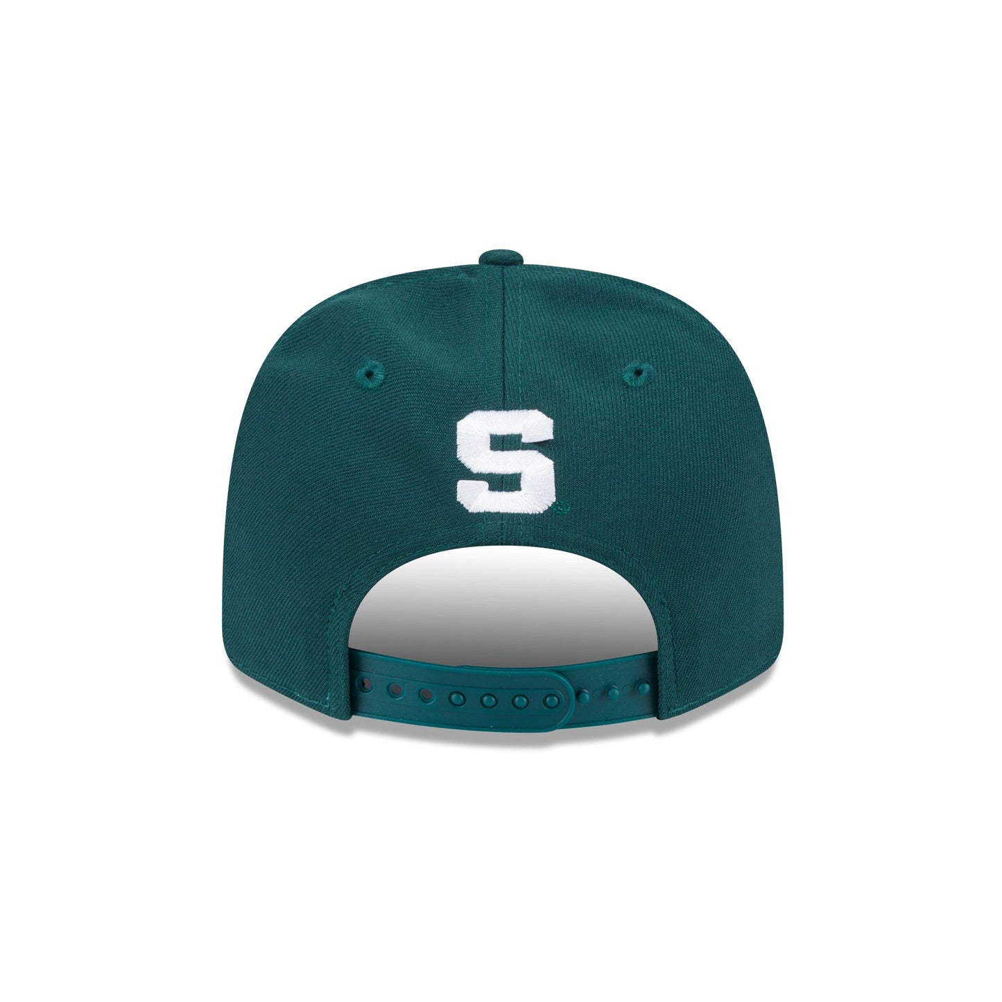 The Michigan State Spartans Team 9SEVENTY Stretch-Snap Cap features an embroidered Spartans logo at the front panels with an alternate team logo above a snapback closure at the rear and a gray undervisor.