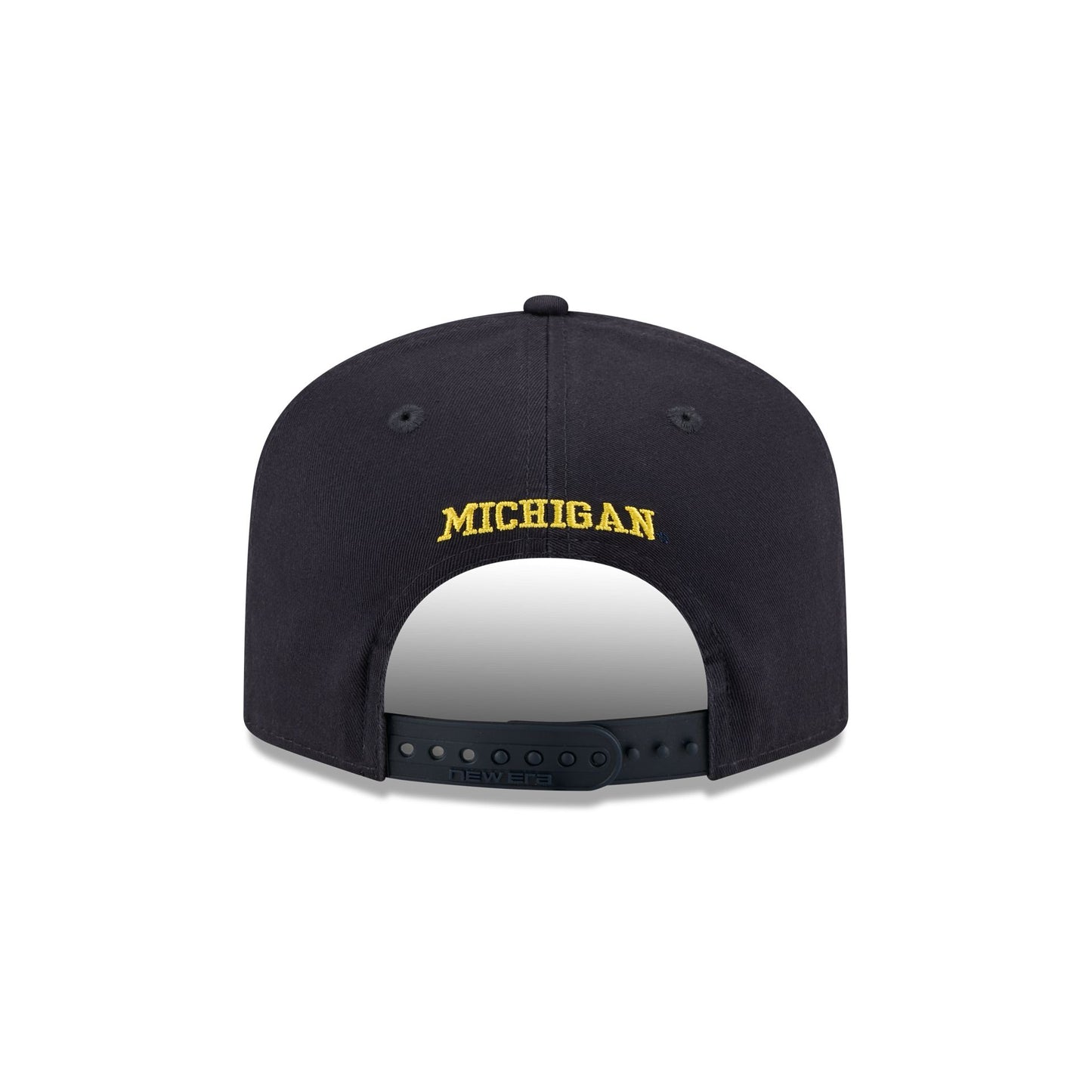 The Michigan Wolverines 19TWENTY Snapback features an embroidered Wolverines logo at the front with an alternate team logo above a snapback closure at the rear and a gray undervisor.