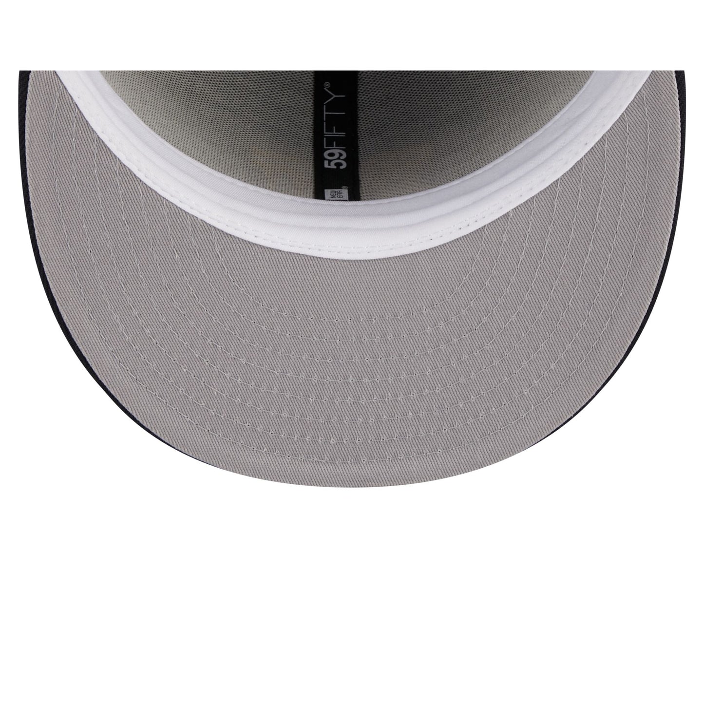 The Michigan Wolverines Blue 59FIFTY Fitted Cap features an embroidered Wolverines logo at the front panels with a matching team wordmark at the rear and a gray undervisor.