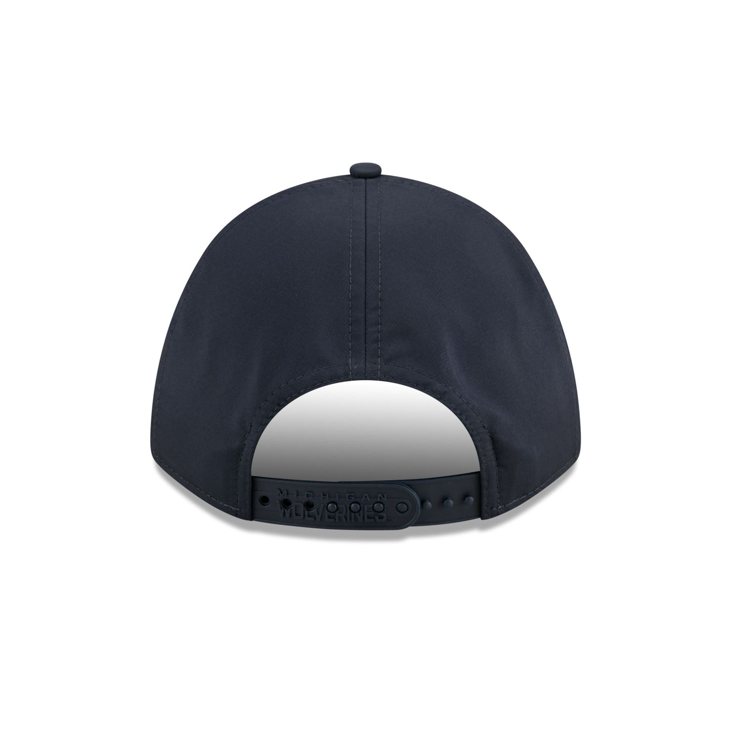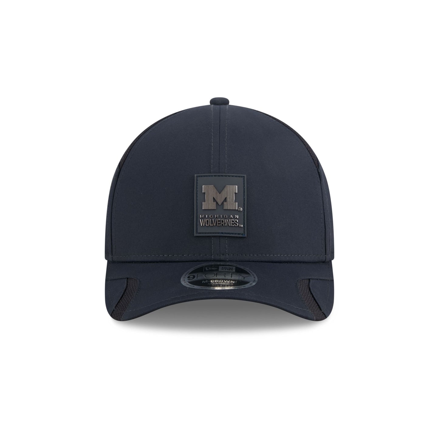 The Michigan Wolverines Hot Weather 9FORTY M-Crown Snapback features a sewn-down silicone Wolverines logo patch at the front panels with a water-repellent quill tech fabrication throughout and a quick-dry cushioned sweatband to absorb moisture. Additional details include a team wordmark on a soft silicone snapback closure at the rear with team color silicone transfer details at the undervisor.