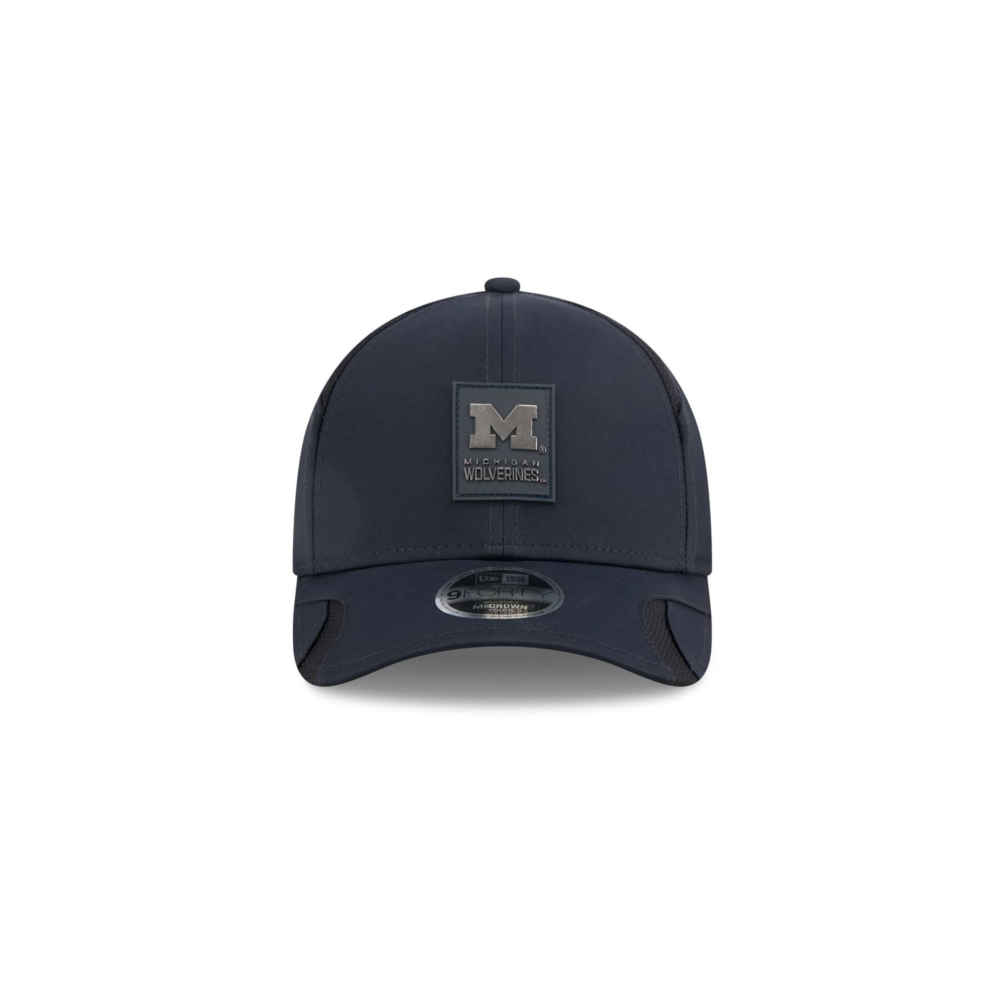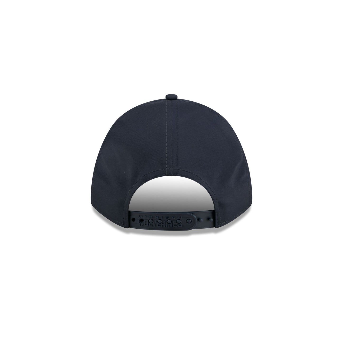 The Michigan Wolverines Hot Weather Kids 9FORTY M-Crown Snapback features a sewn-down silicone Wolverines logo patch at the front panels with a water-repellent quill tech fabrication throughout and a quick-dry cushioned sweatband to absorb moisture. Additional details include a team wordmark on a soft silicone snapback closure at the rear with team color silicone transfer details at the undervisor.