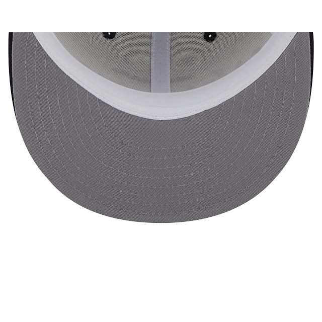 The Michigan Wolverines College Vault Script 9FIFTY Snapback features an embroidered Wolverines script at the front panels, a 1989 NCAA Final Four patch at the right-wear side, and a snapback closure at the rear. Additional details include a navy visor and gray undervisor.
