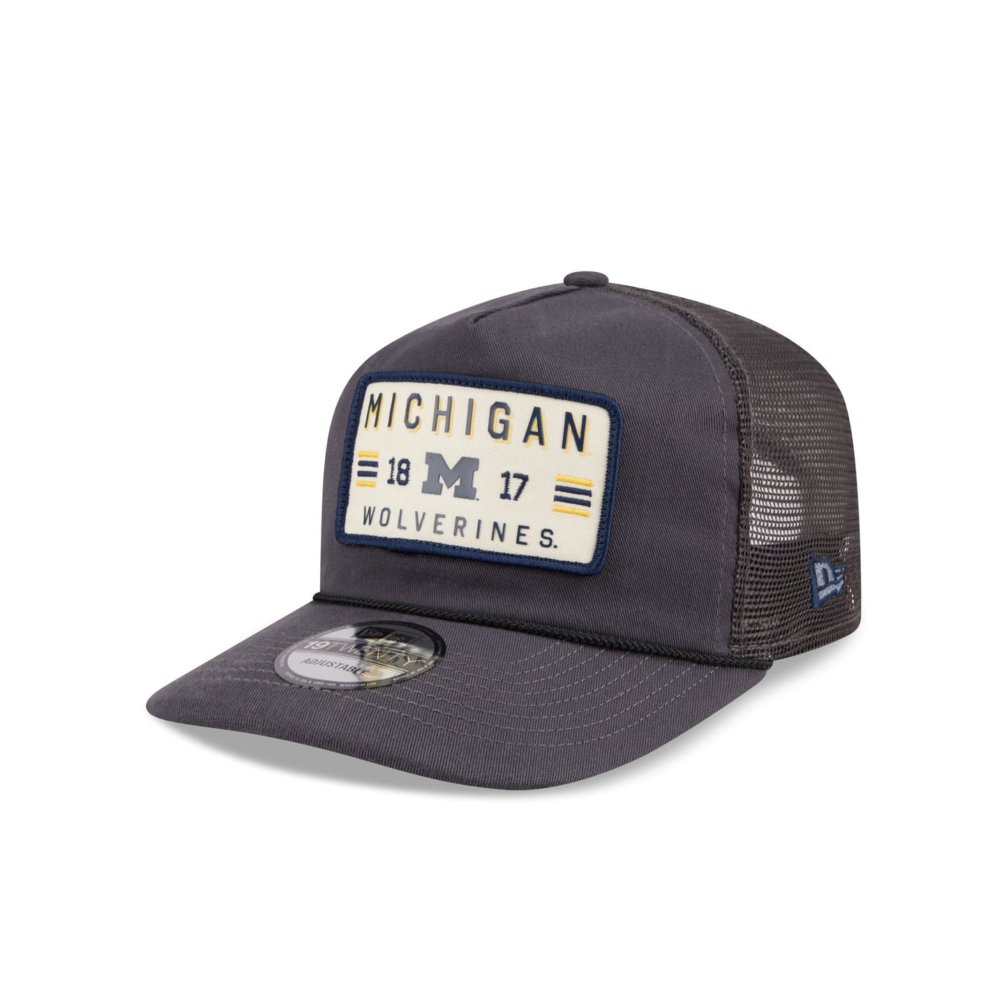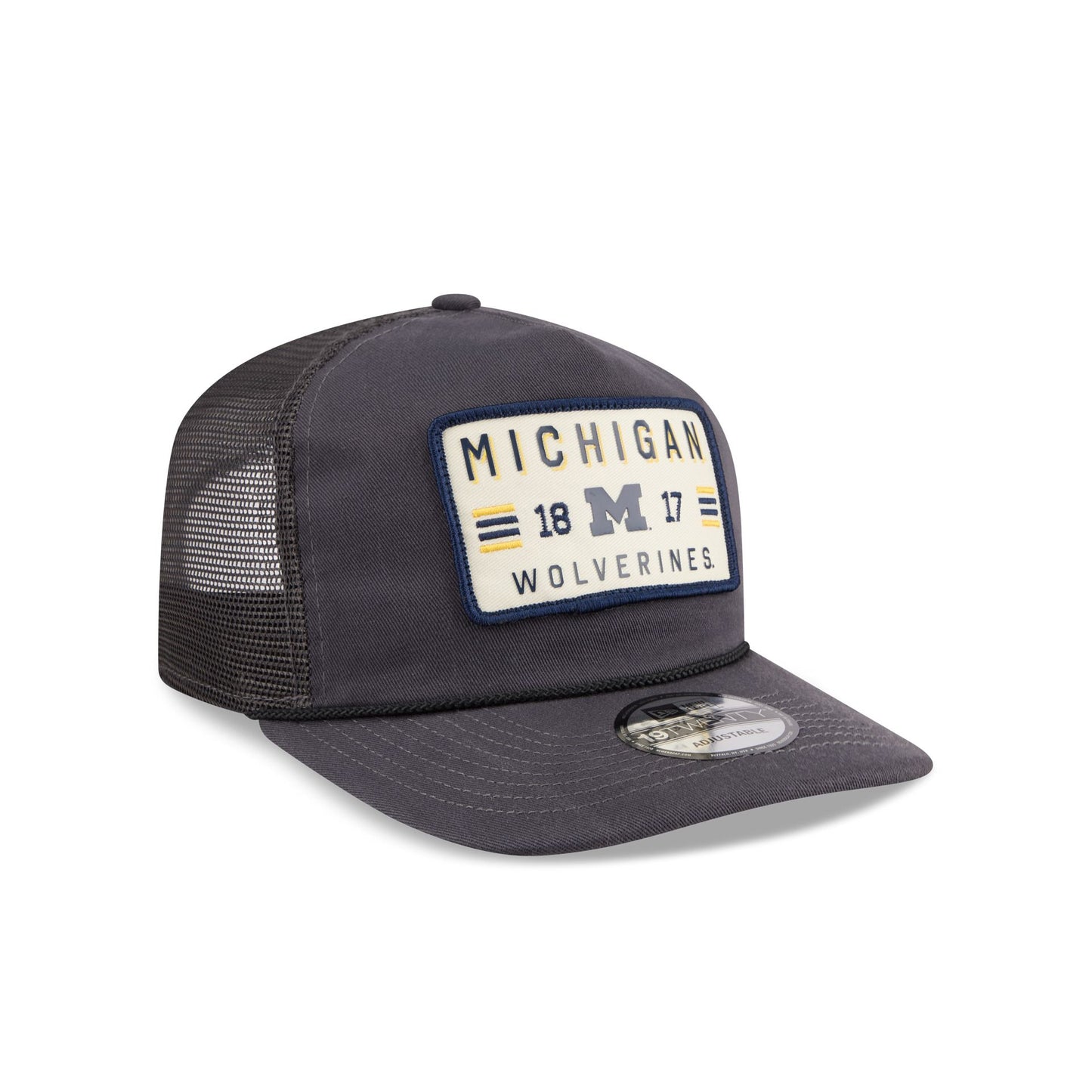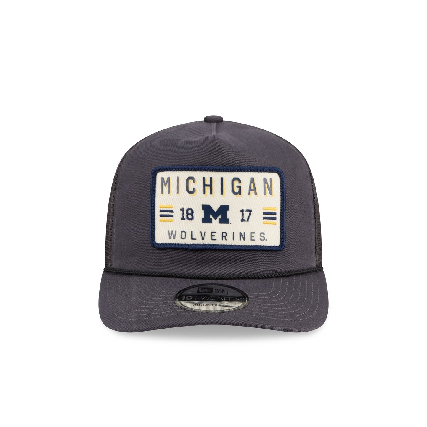 The Michigan Wolverines Washed Graphite 19TWENTY Trucker features an embroidered Wolverines patch at the front panels against a soft washed fabrication. Additional details include an adjustable snapback closure at a mesh rear and a gray undervisor.