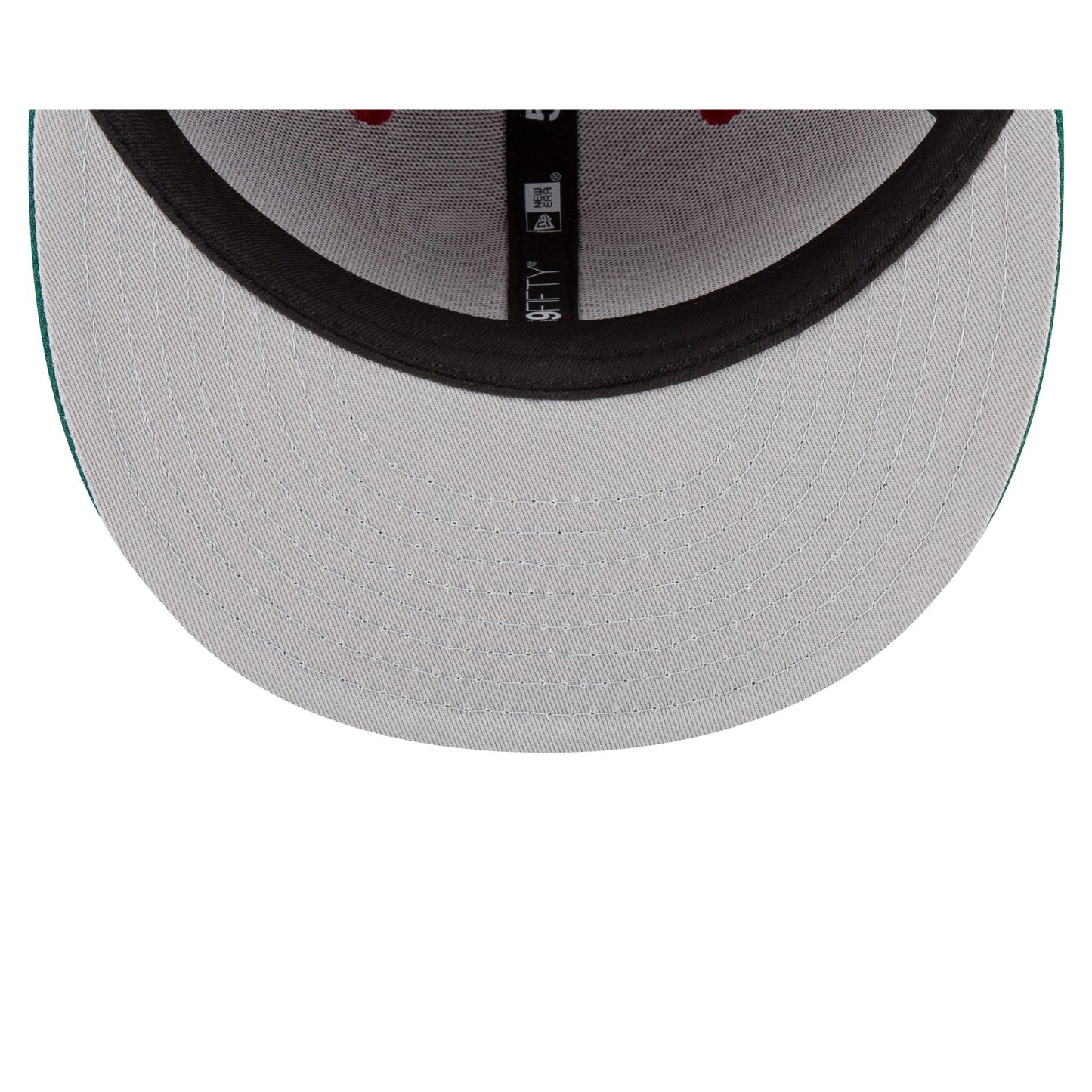 The Milwaukee Brewers Cinco de Mayo 59FIFTY Fitted Cap features an embroidered Brewers inspired sugar skull at the front panels with a matching MLB Batterman logo at the rear, a Mexico flag at the right-wear side, and a gray undervisor.