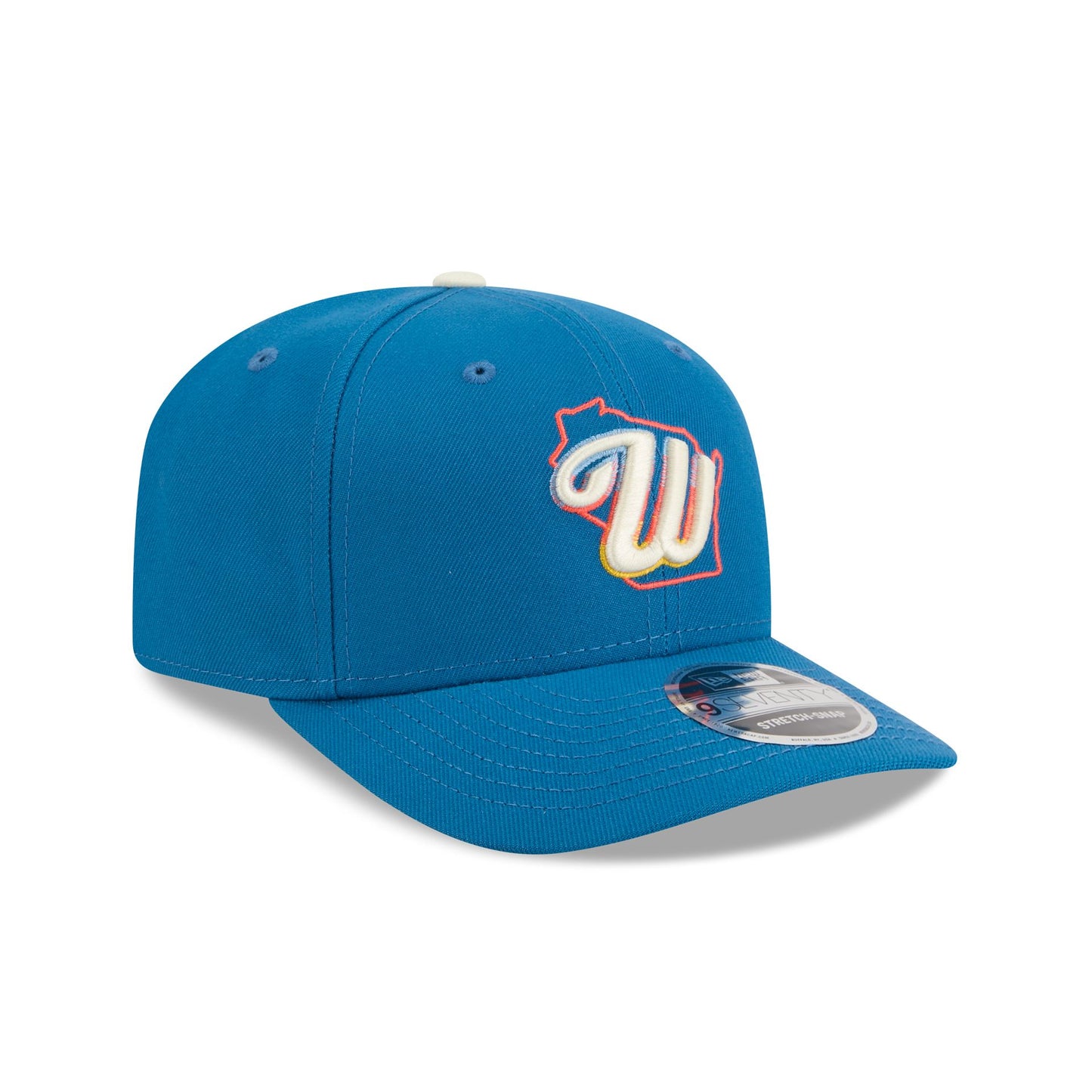 The Milwaukee Brewers 2026 City Connect 9SEVENTY Stretch-Snap Cap draws originality from unique elements tied to the surrounding city and features an embroidered Brewers state logo at the front panels with a matching MLB Batterman logo above an adjustable stretch-snap closure at the rear. Additional details include a screen-printed FORWARD wordmark at the interior tape and a black undervisor; the state patch and pastel colorway are inspired by the scenic lakes, lush forests, and abundant wildlife.