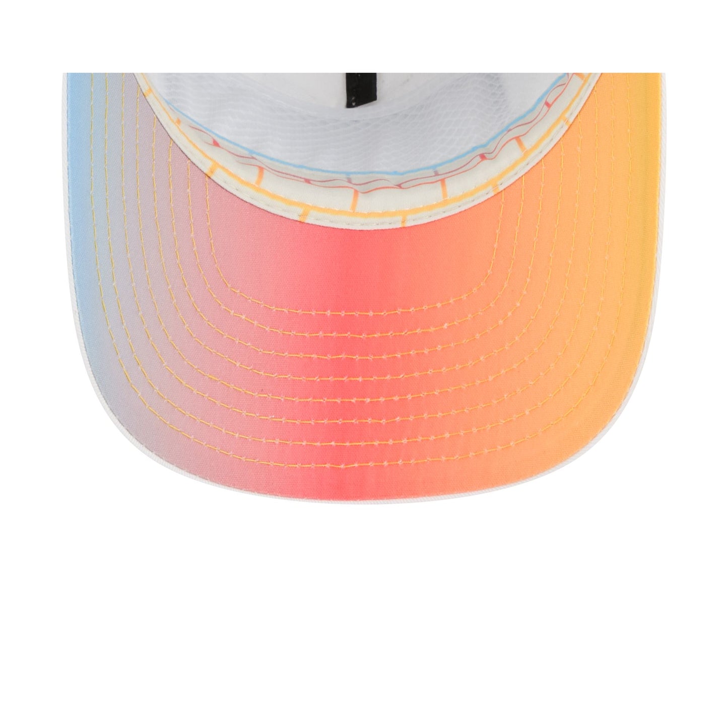 The Milwaukee Brewers 2026 City Connect Fan Pack Pre-Curved 19TWENTY Trucker features a woven Brewers wordmark and state logo patch at the front panel with an adjustable snapback closure at the rear. Additional details include a brick patterned interior sweatband with a blue and orange gradient undervisor, the pastel colorway is inspired by the scenic lakes, lush forests, and abundant wildlife.