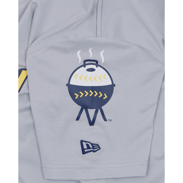 Jersey inspired, city connected. The Milwaukee Brewers City Connect Gray T-Shirt features screen-printed Brewers logos at the front with an alternate team logo at the left-wear sleeve.
