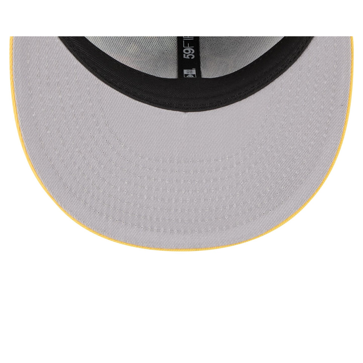 The Milwaukee Brewers Diamond Hero Edition 59FIFTY Fitted Cap features an embroidered Brewers onomatopoeia pop logo at the front panels with baseball comic book prints at the front and back panel. Additional details include the MLB Batterman logo at the rear and a gray undervisor.