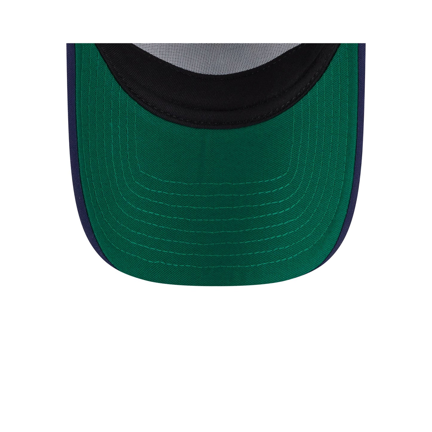 The Milwaukee Brewers Distressed 9FORTY A-Frame Trucker features a distressed screen-printed Brewers wordmark and logo at the front panels with a team tag at a snapback closure at the rear and a green undervisor.