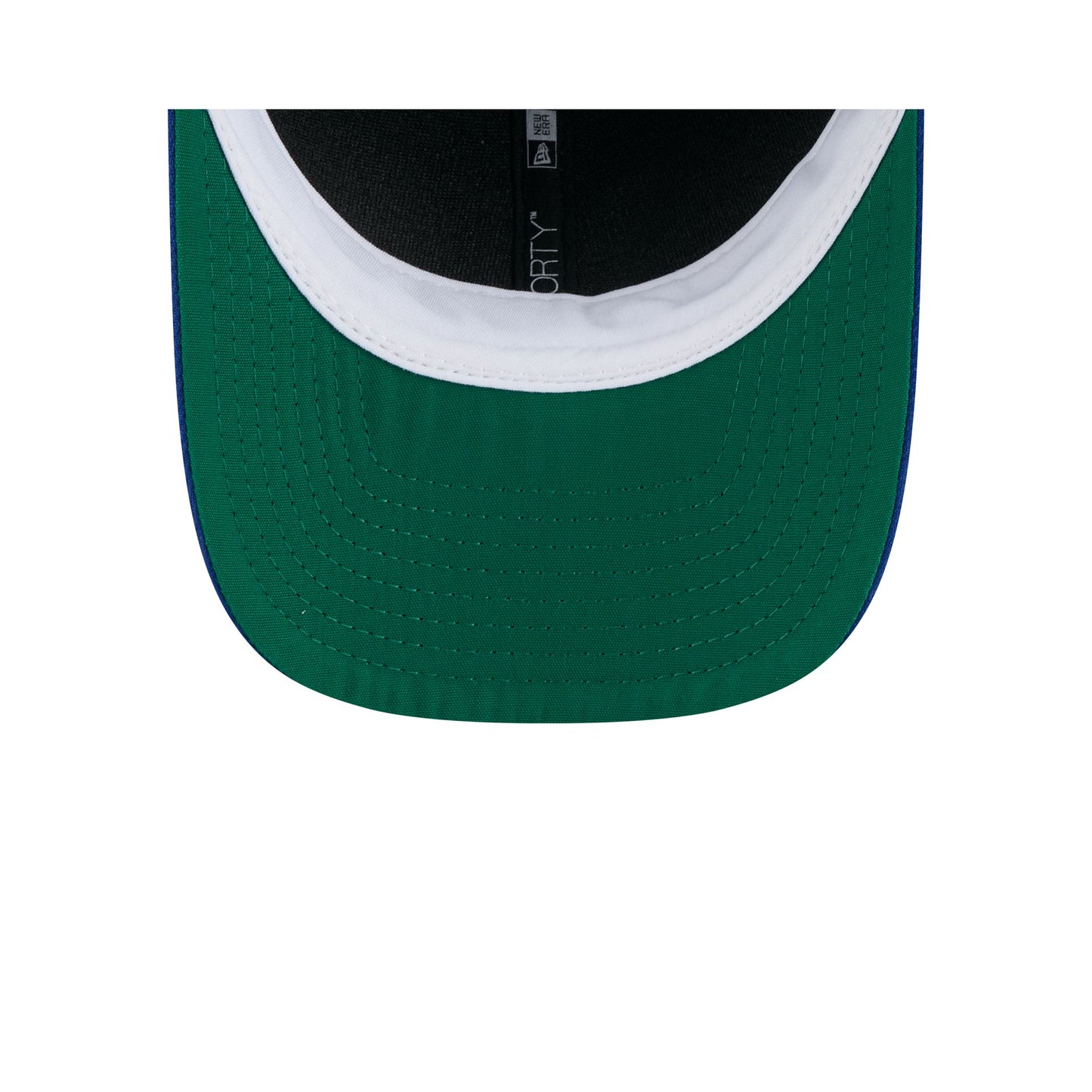 The Milwaukee Brewers Hall of Fame 2025 9FORTY M-Crown Snapback features an embroidered Brewers Cooperstown logo at the front panels with a matching MLB Batterman logo above a snapback closure at the rear, a National Baseball Hall of Fame patch at the right-wear side, and a green undervisor.