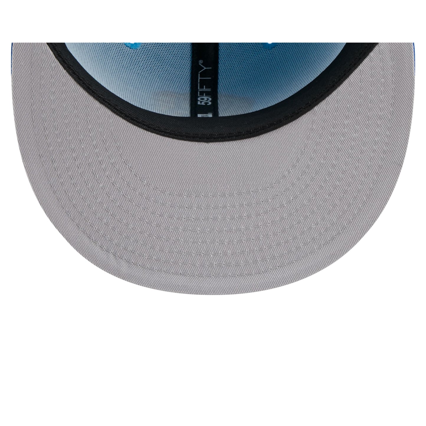 The Milwaukee Brewers Independence Day 2025 59FIFTY Fitted Cap features an embroidered American flag themed Brewers logo at the front panels with a matching MLB Batterman logo at the rear, a blue visor, and a gray undervisor.