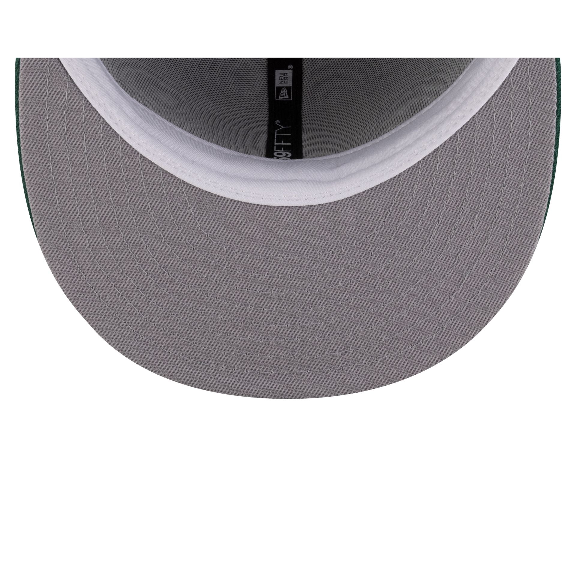 The Milwaukee Brewers Mascot Light Navy 59FIFTY Fitted Cap features an embroidered Brewers mascot at the front panels with a matching MLB Batterman logo at the rear. Additional details include a 25th Anniversary patch at the right-wear side and a gray undervisor,