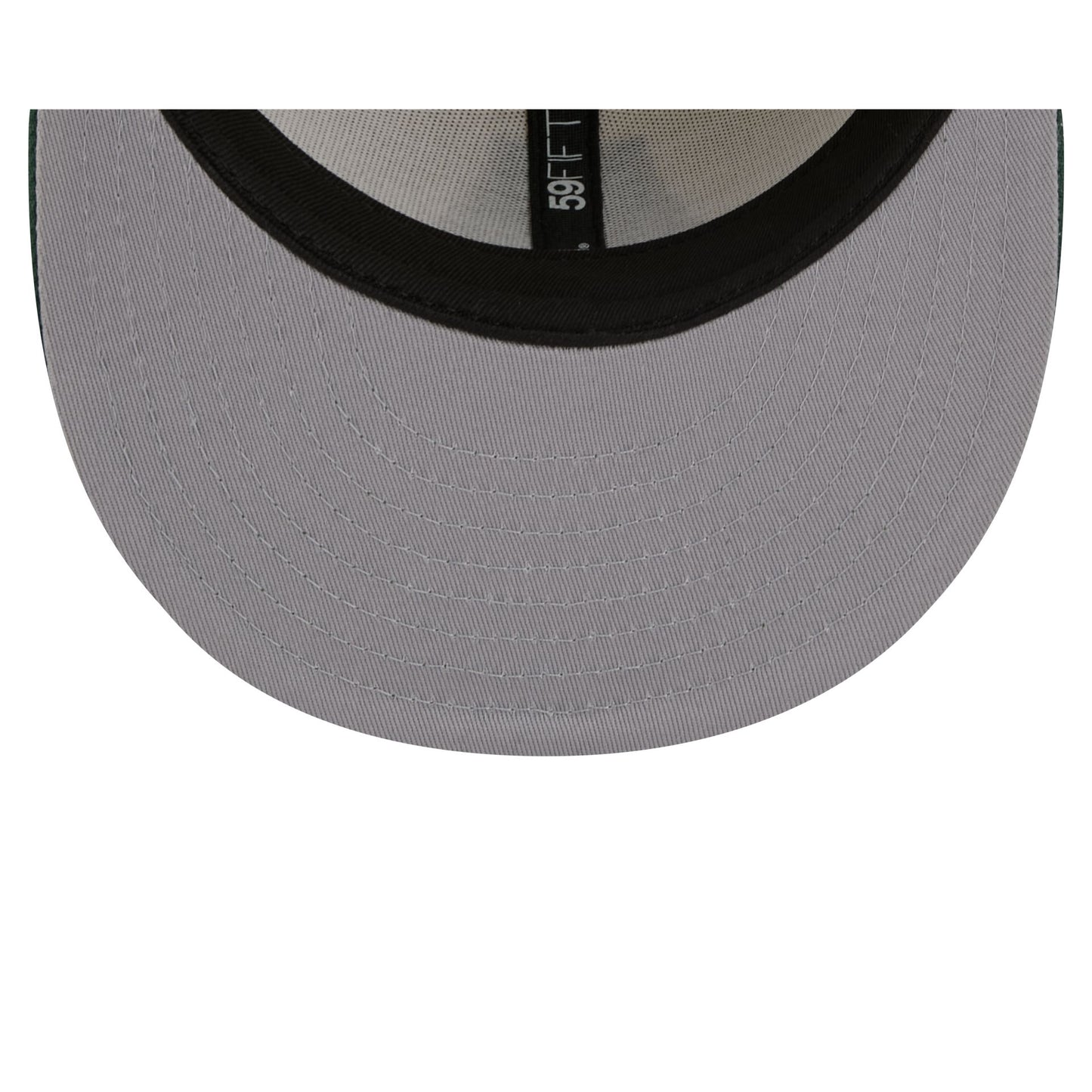 The Milwaukee Bucks 2025 City Edition 59FIFTY Fitted Cap features an embroidered Bucks City Edition logo at the front panels with a logo at the right-wear side. Additional details include the NBA Logoman at the rear and a gray undervisor.