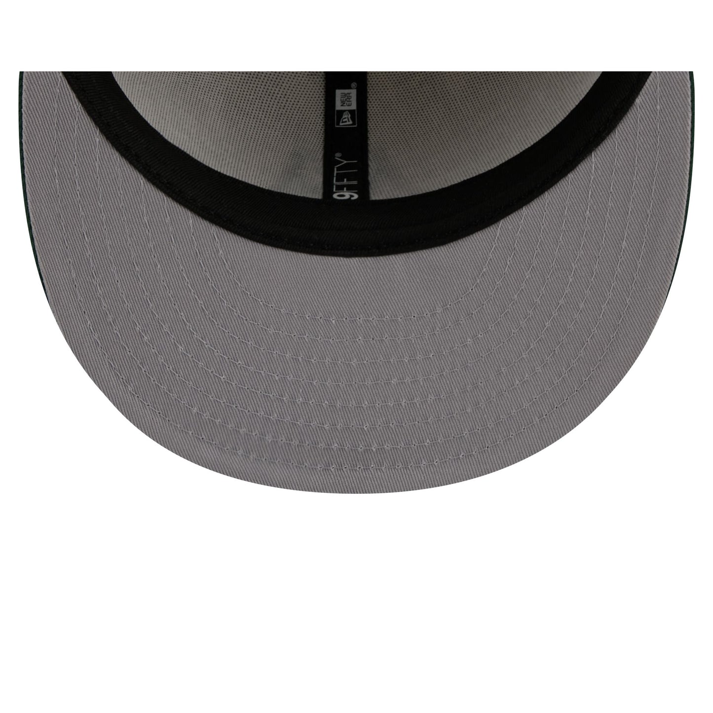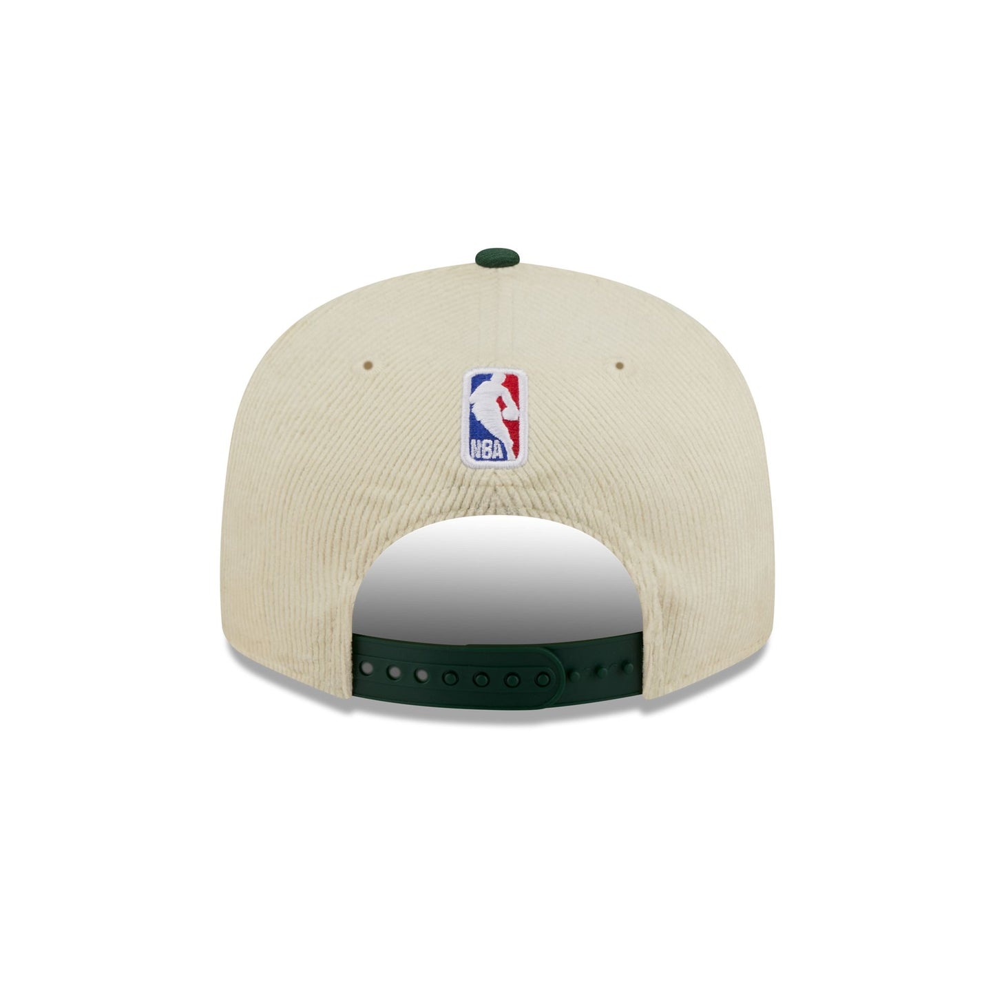 The Milwaukee Bucks 2025 City Edition Chrome White Corduroy 9FIFTY Snapback features an embroidered Bucks City Edition logo at the front panels with a City Edition jock tag stitched at the right-wear side. Additional details include a corduroy fabrication, the NBA Logoman above an adjustable snapback closure at the rear, and a gray undervisor.