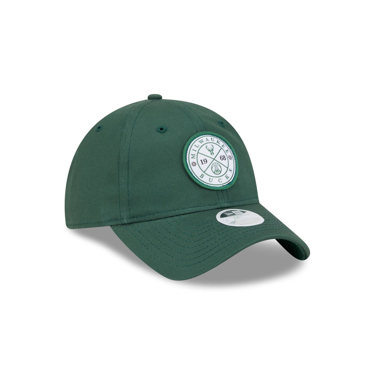 The Milwaukee Bucks Bloom Women's 9TWENTY Adjustable Cap features an embroidered Bucks circle logo at the front panels with an adjustable D-Ring closure at the rear.