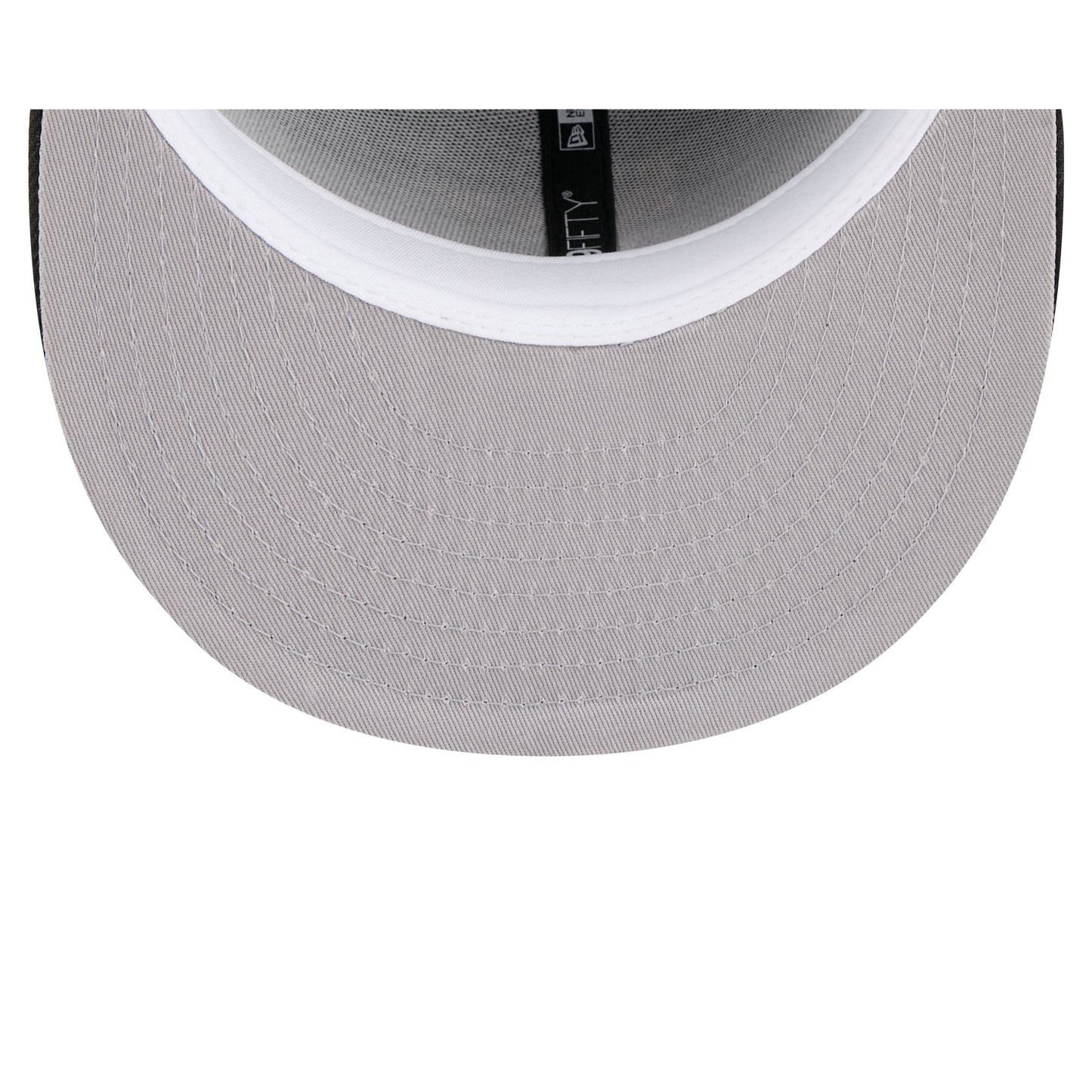 The Milwaukee Bucks 1968-1992 Hardwood Classics 59FIFTY Fitted Cap features an embroidered vintage Bucks logo at the front panels with the NBA Logoman at the rear and a gray undervisor.