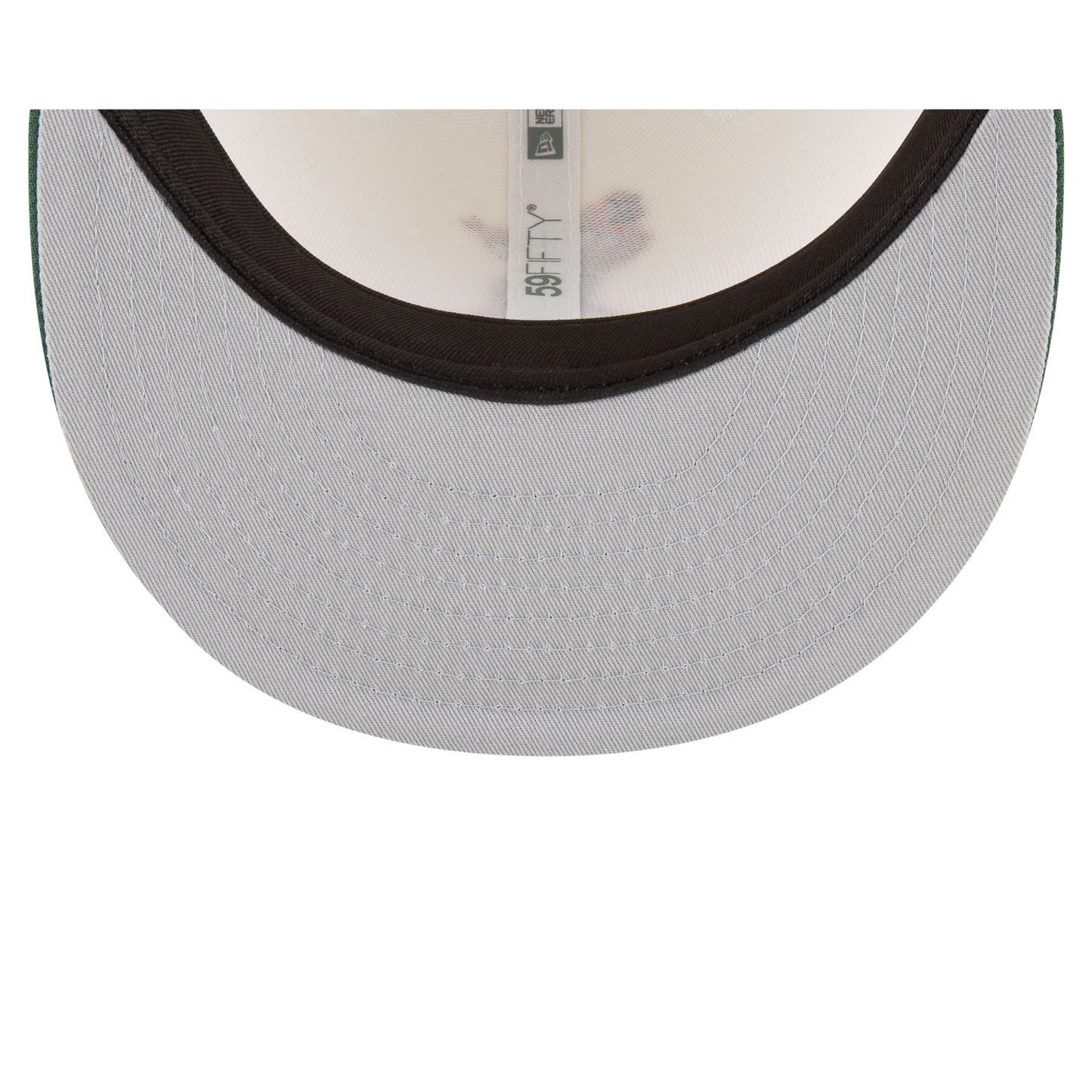 The Milwaukee Bucks Mascot 59FIFTY Fitted Cap features an embroidered Bucks mascot logo at the front panels with a matching team wordmark at the rear and a gray undervisor.