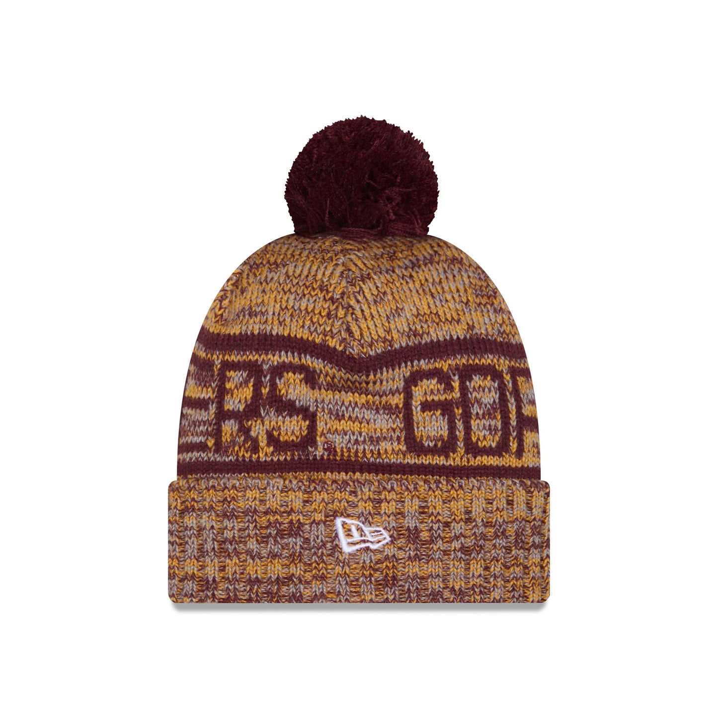 The Minnesota Golden Gophers Cold Weather Pom Knit features a sewn-down silicone Golden Gophers logo patch at the front cuff with a New Era Flag at the left-wear side. Additional details include a team wordmark across the crown, a one-time removeable pom, and a fleece lining.