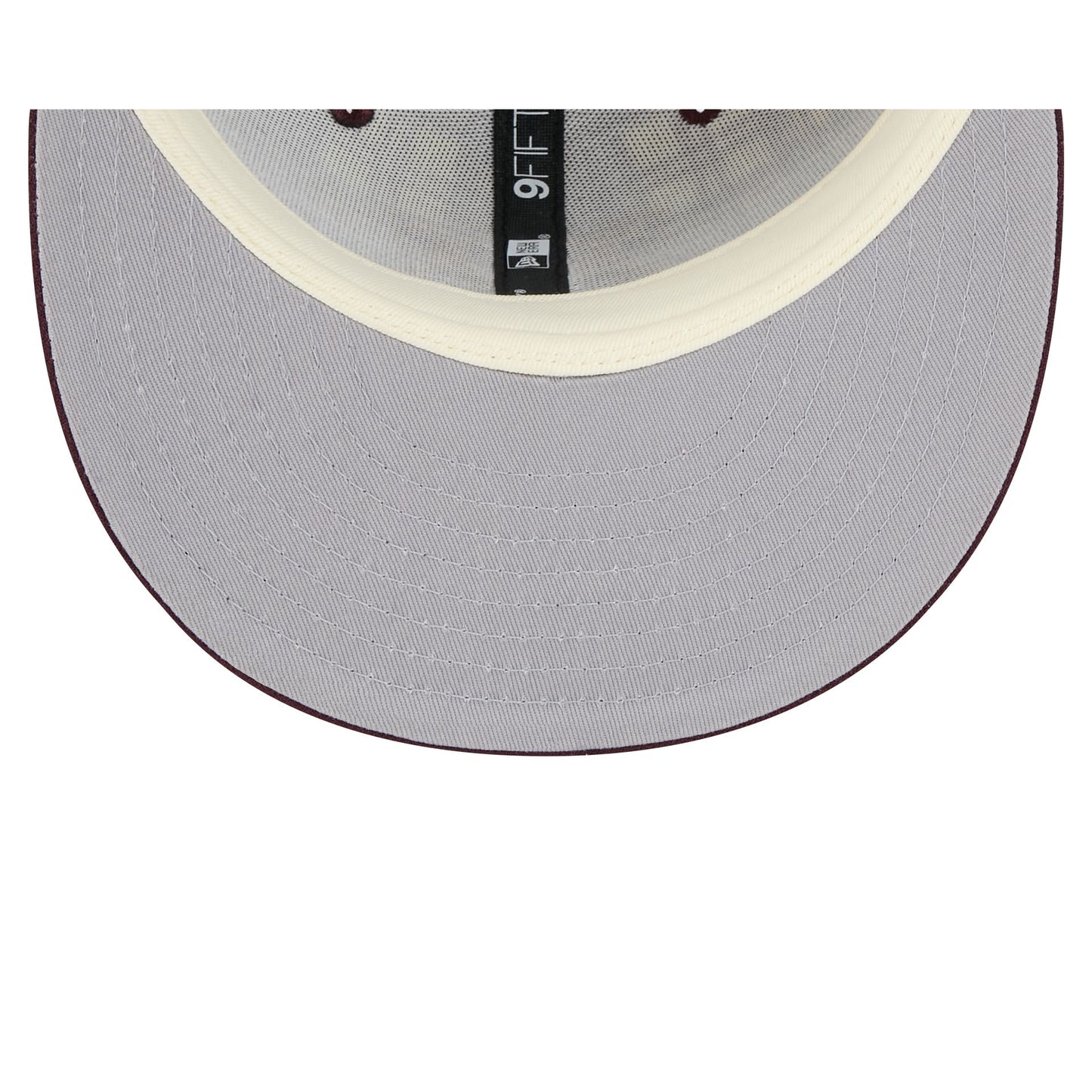 The Minnesota Golden Gophers Plaid 9FIFTY Snapback features an embroidered Golden Gophers logo at the front panels against a matching plaid pattern. Additional details include a team logo above a snapback closure at the rear and a gray undervisor.