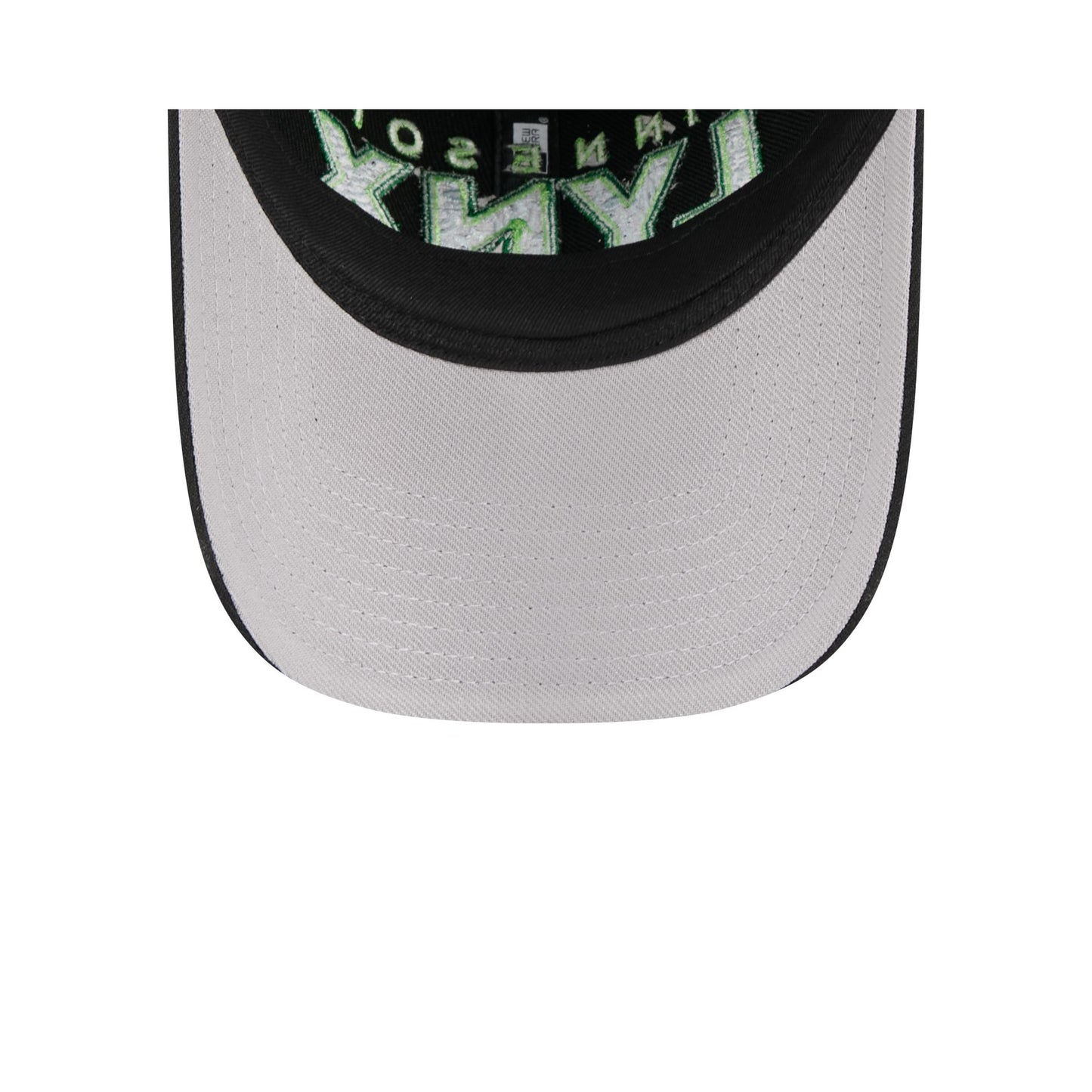 The Minnesota Lynx Rebel Series 9TWENTY Adjustable Cap features an embroidered Lynx wordmark at the front panels with a team logo at the right-wear side, an adjustable D-Ring closure at the rear, and a gray undervisor.