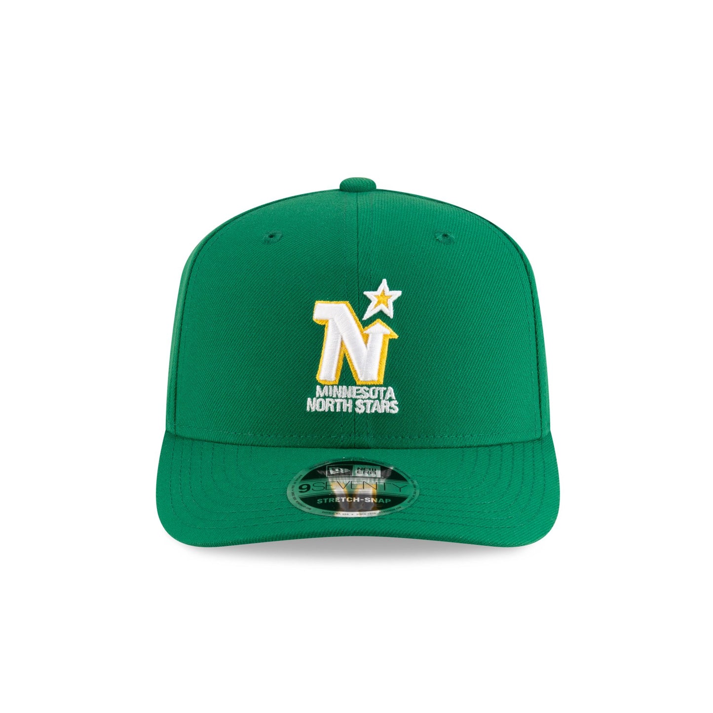 The Minnesota North Stars Team 9SEVENTY Stretch-Snap Cap features an embroidered North Stars logo at the front panels with the NHL Shield logo above an adjustable stretch-snap closure at the rear and a gray undervisor.