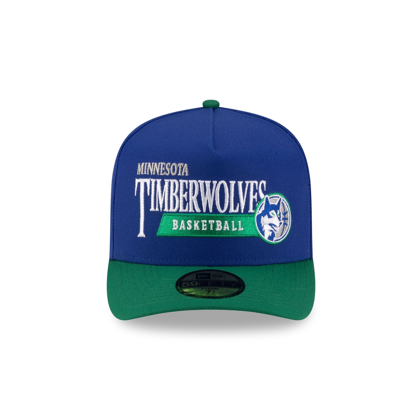 The Minnesota Timberwolves 1989-1996 Hardwood Classics Liner 59FIFTY A-Frame Fitted Cap features an embroidered Timberwolves 1989-1996 Hardwood Classics graphic at the front panels with a team patch at the right-wear side. Additional details include the NBA Logoman at the rear and a gray undervisor.