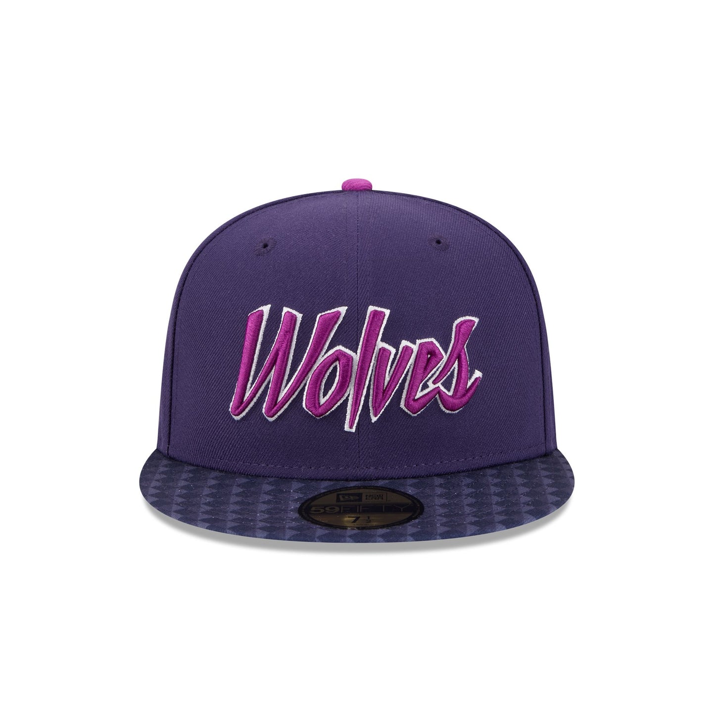 The Minnesota Timberwolves 2025 City Edition 59FIFTY Fitted Cap features an embroidered Timberwolves City Edition logo at the front panels with a logo at the right-wear side. Additional details include the NBA Logoman at the rear and a gray undervisor.