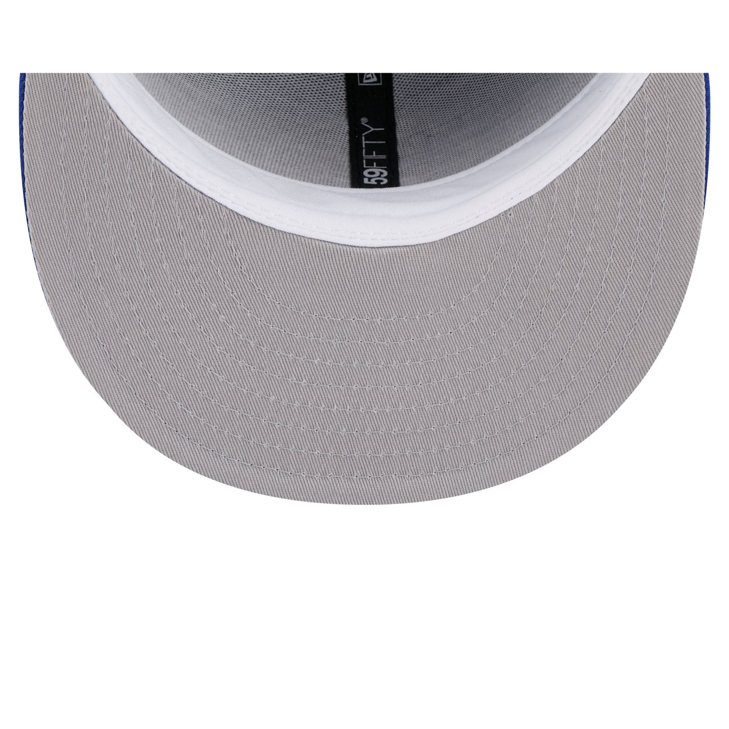 The Minnesota Timberwolves 1989-1995 Hardwood Classics 59FIFTY Fitted Cap features an embroidered vintage Timberwolves logo at the front panels with the NBA Logoman at the rear and a gray undervisor.