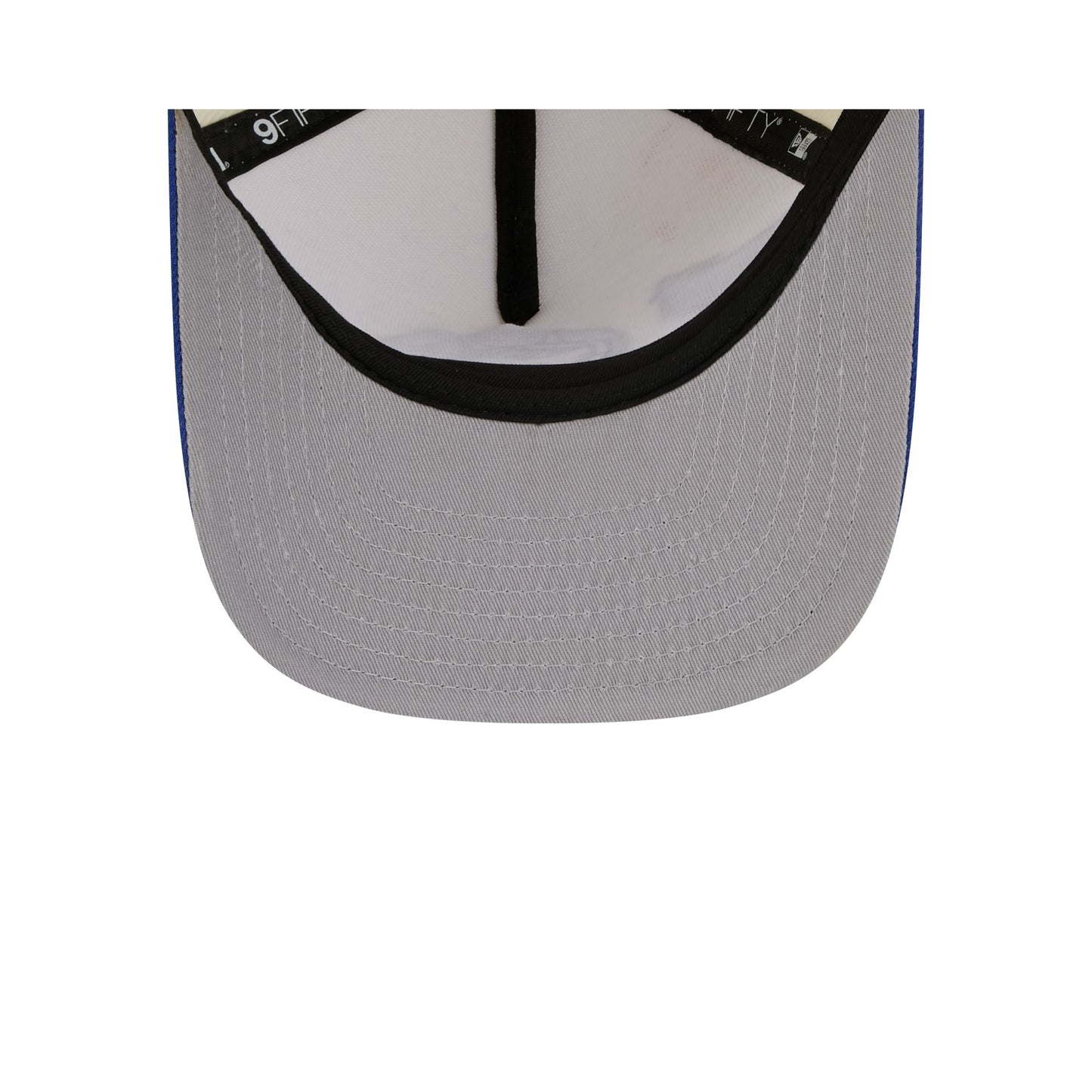 The Minnesota Timberwolves 1989-1995 Hardwood Classics Chrome White 9FIFTY A-Frame Snapback features an embroidered vintage Timberwolves logo at the front panels with a team graphic to the right. Additional details include an adjustable snapback closure at the rear and a gray undervisor.