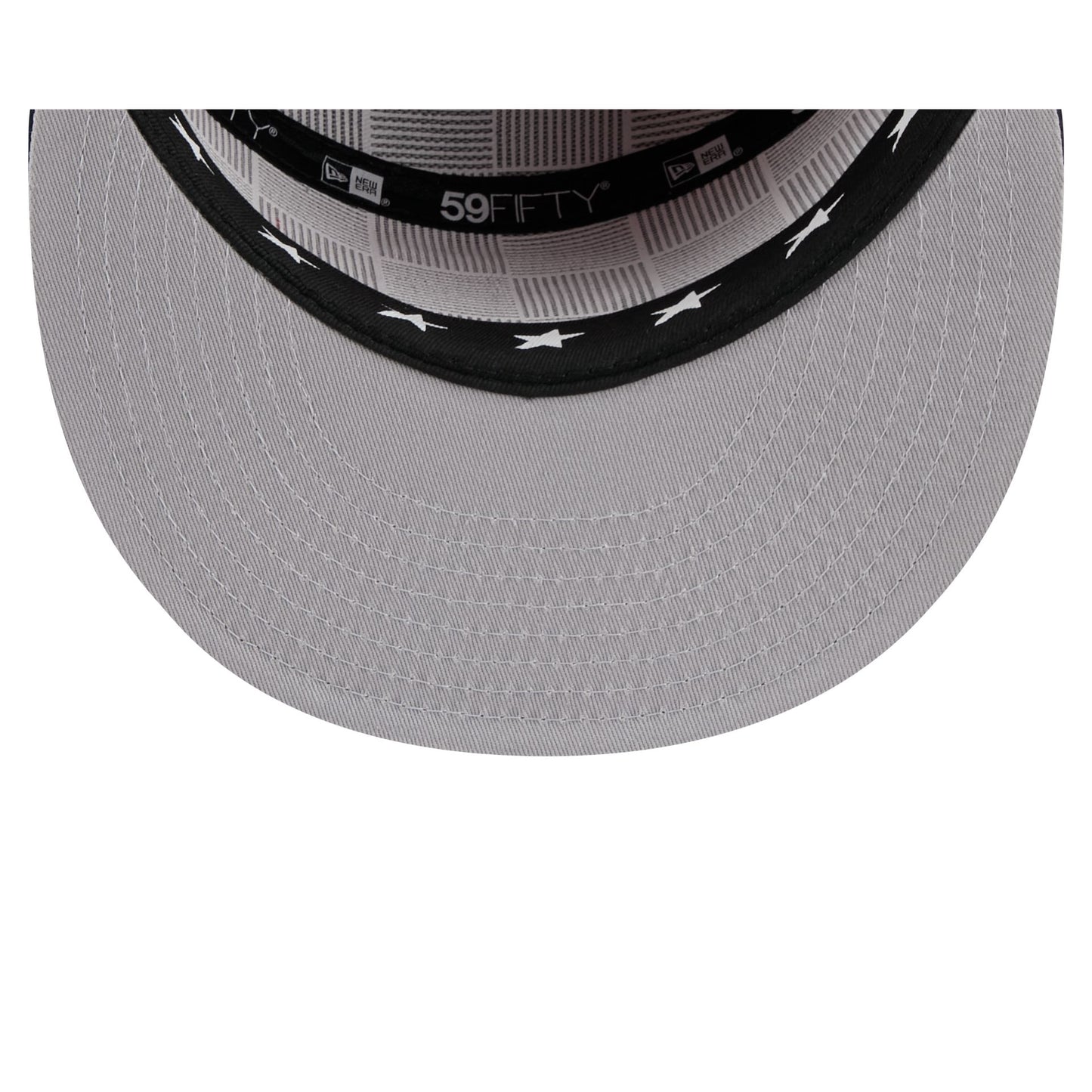 The Minnesota Twins 2025 All-Star Game Split Panel 59FIFTY Fitted Cap features an embroidered Twins logo at the front panels against a split-crown construction with breathable mesh fabric at the side and rear panels. Additional details include stars at the top panel, a 2025 All-Star Game patch at the right-wear side, the MLB Batterman logo at the rear, and a gray undervisor. The cap also features screen-printed stars on the sweatband.
