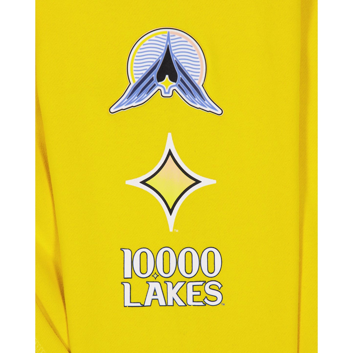 The Minnesota Twins City Connect Yellow Hoodie features a screen-printed Twins logo at the front with alternate team logos at the left sleeve.