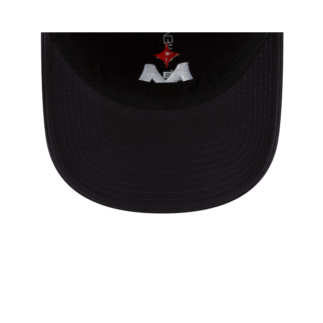 The Minnesota Twins Core Classic Road 9TWENTY Adjustable Cap features an embroidered Twins logo at the front panels with a woven tab displaying the team logo on an adjustable D-Ring closure at the rear.