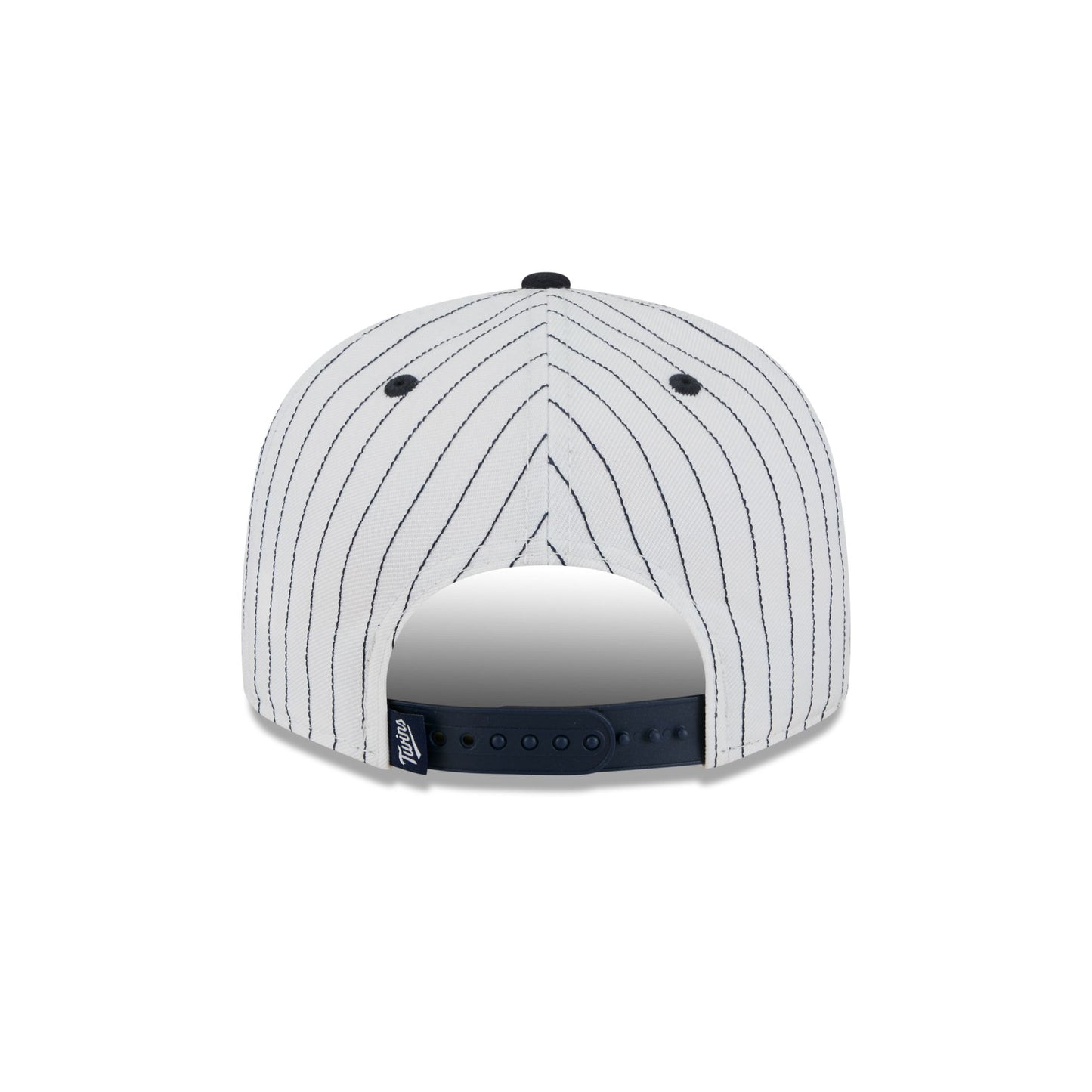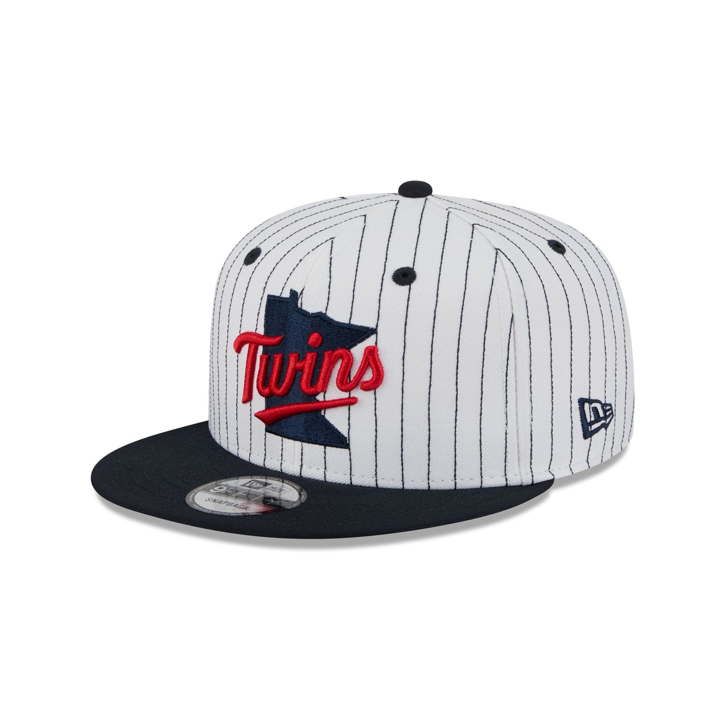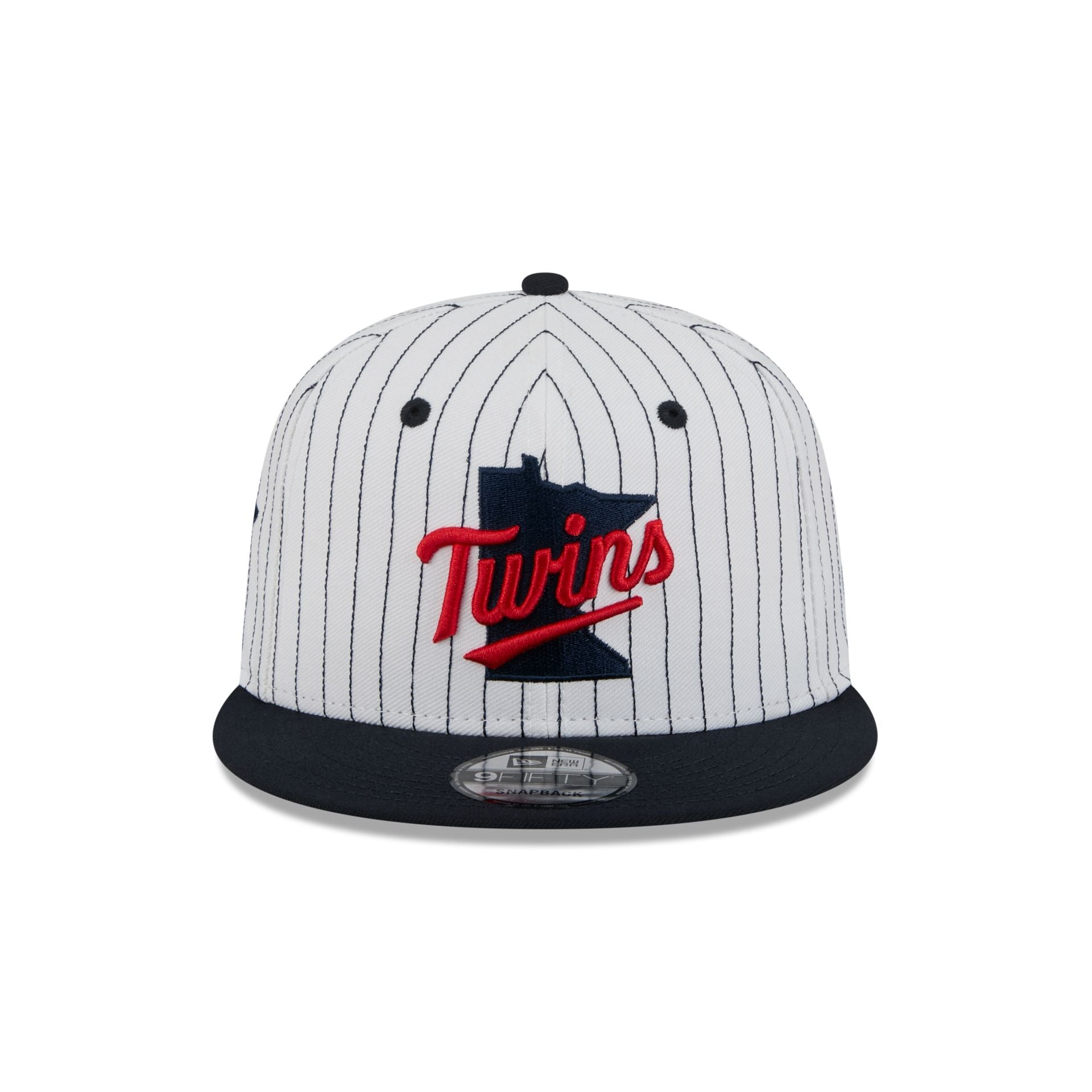 The Minnesota Twins Deceptor 9FIFTY Snapback features an embroidered Twins deceptive logo at the front panels with a team logo at the right-wear side. Additional details include a snapback closure at the rear and a gray undervisor.