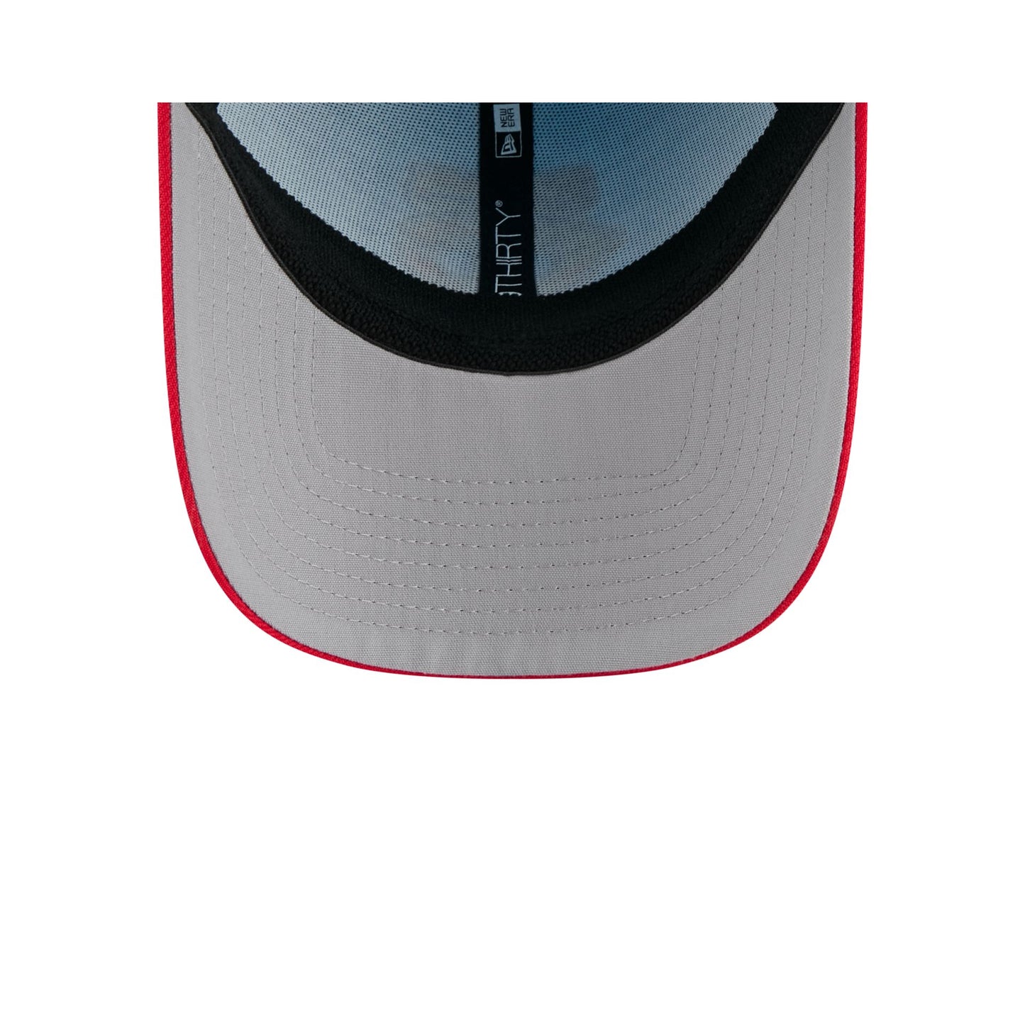 The Minnesota Twins Independence Day 2025 39THIRTY Stretch Fit Cap features an embroidered American flag themed Twins logo at the front panels with a matching team wordmark at the rear, a red visor, and a gray undervisor.