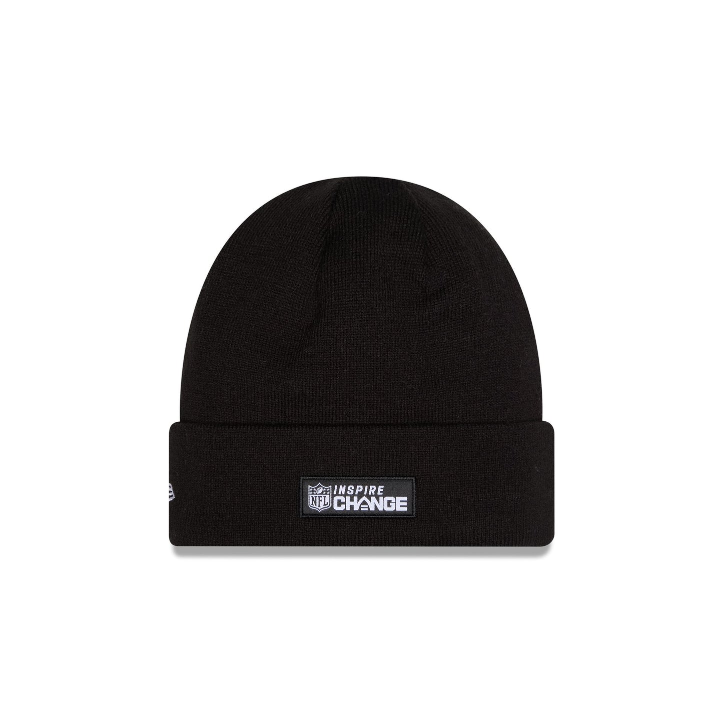 The Minnesota Vikings 2025 Inspire Change Beanie features an embroidered Vikings logo at the front crown and matching "Opportunity" wordmark at the front cuff with an NFL Inspire Change patch at the rear.