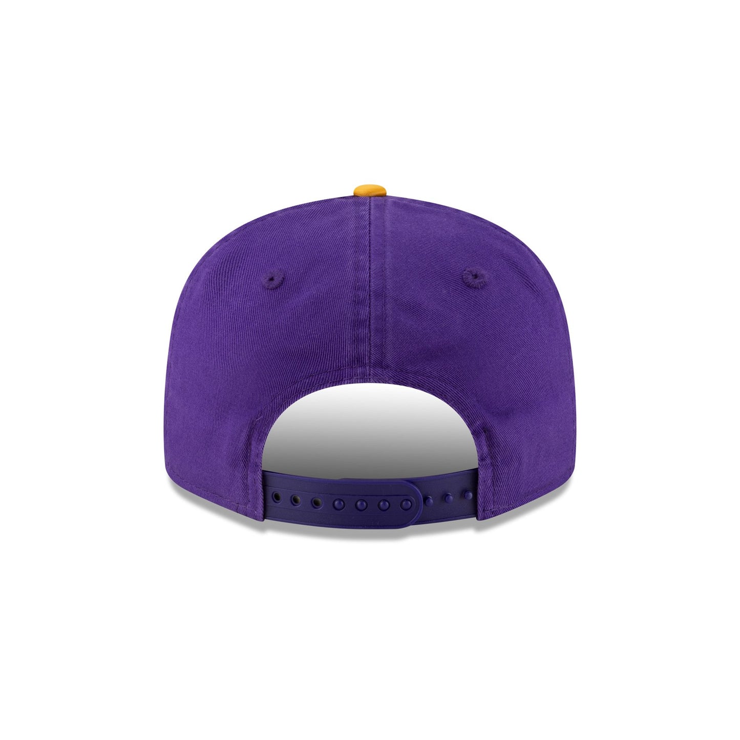 The Minnesota Vikings International Games Series Retro Crown 9FIFTY Snapback features an embroidered Vikings wordmark at the front panels with a logo at the right wear side and an adjustable snapback closure at the rear.