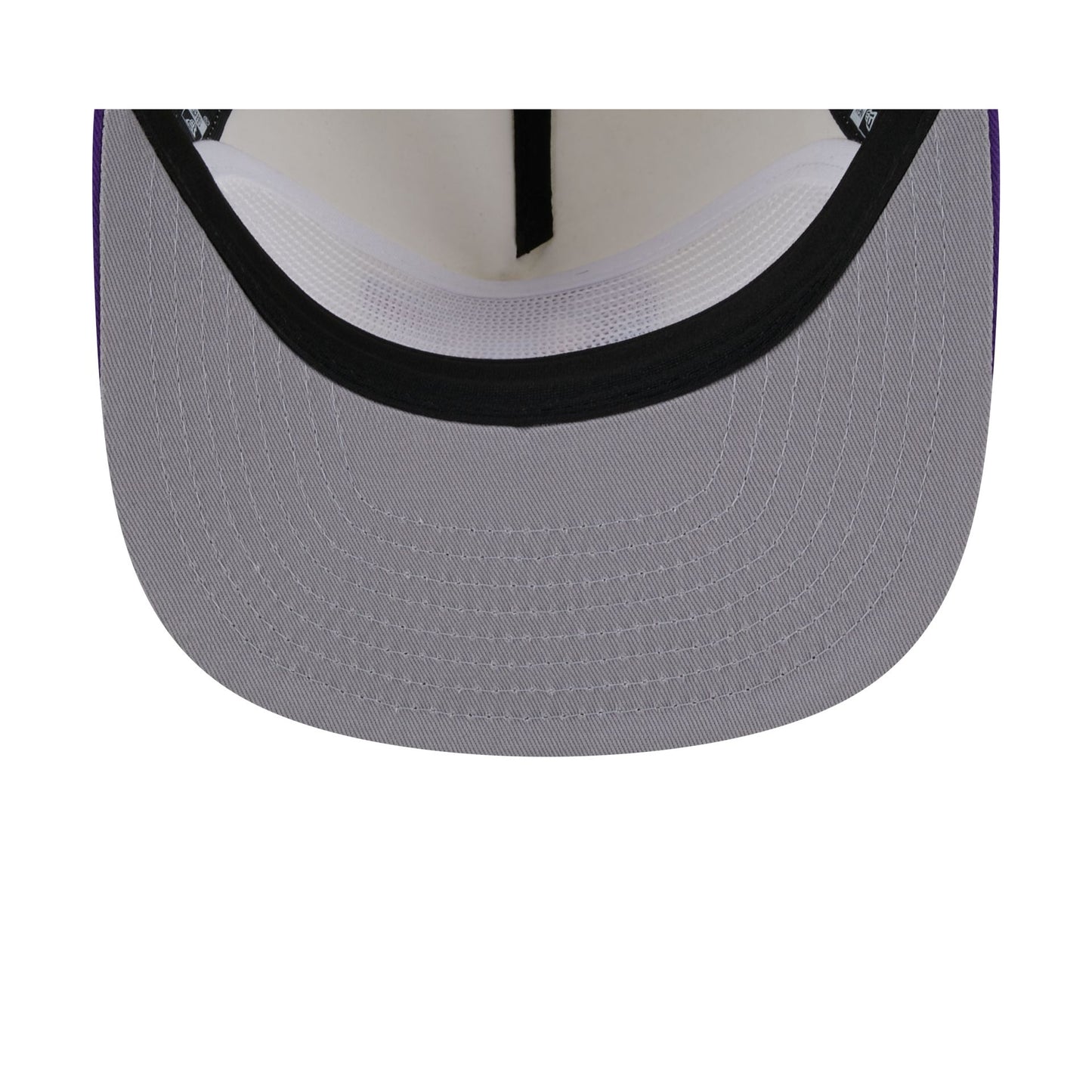 The Minnesota Vikings Pro Bowl Patch Golfer Cap features an embroidered 2001 Pro Bowl patch at the front panels with a Vikings logo on the right-wear side with snapback closure at the rear, a purple visor, and gray undervisor.