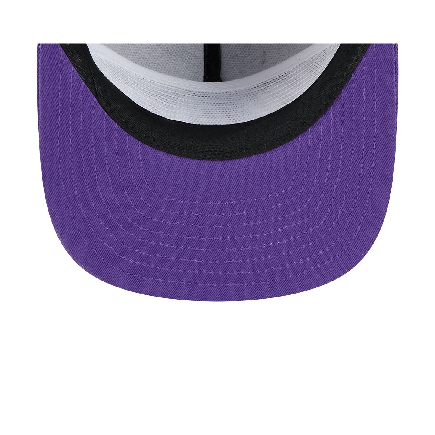 The Minnesota Vikings Team Text Golfer features an embroidered Vikings script at the front panels with a team logo at the right-wear side and a snapback closure at the rear.