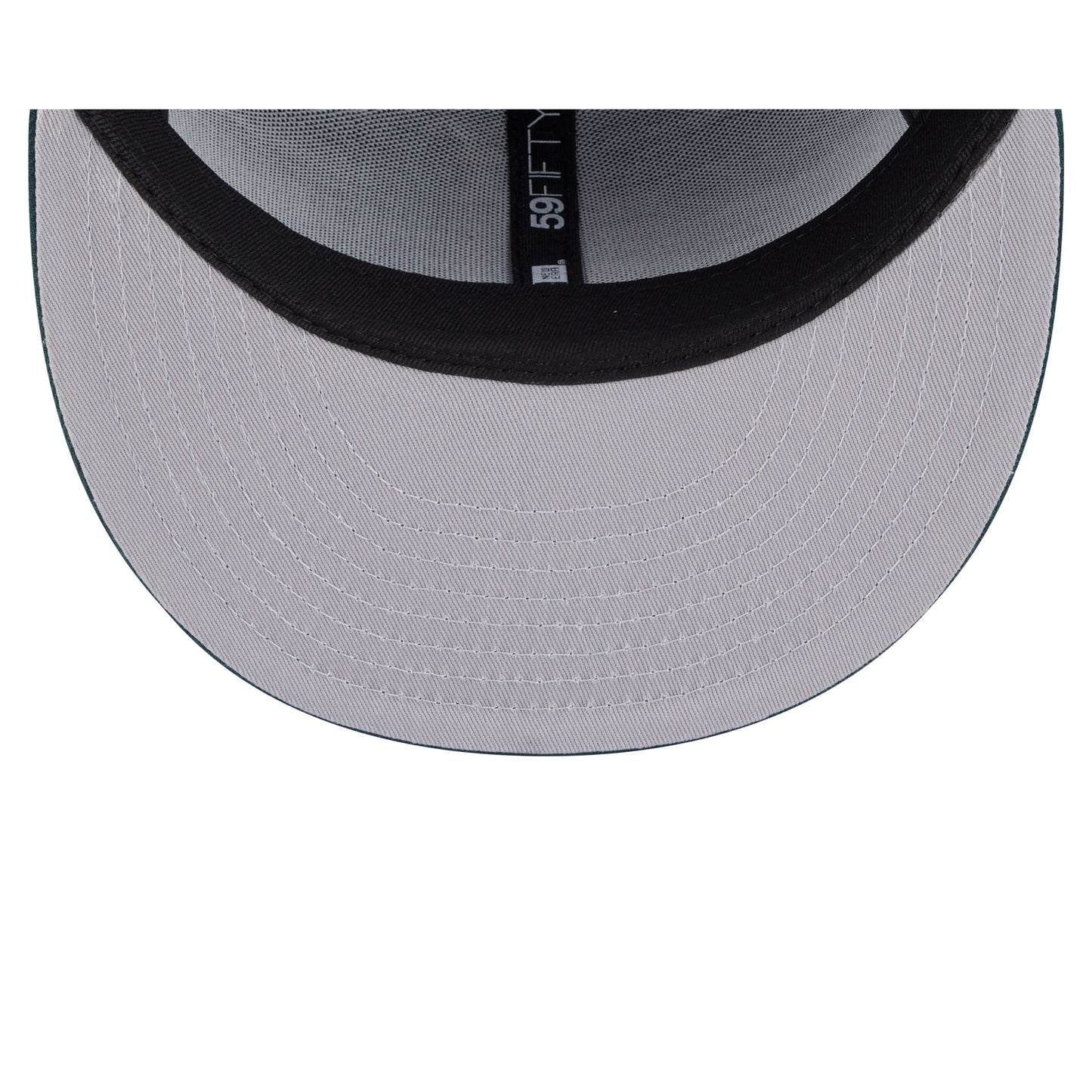 The Minnesota Wild Deceptor 59FIFTY Fitted Cap features an embroidered Wild deceptive logo at the front panels with a team logo at the right-wear side. Additional details include a wordmark at the rear, and a gray undervisor.
