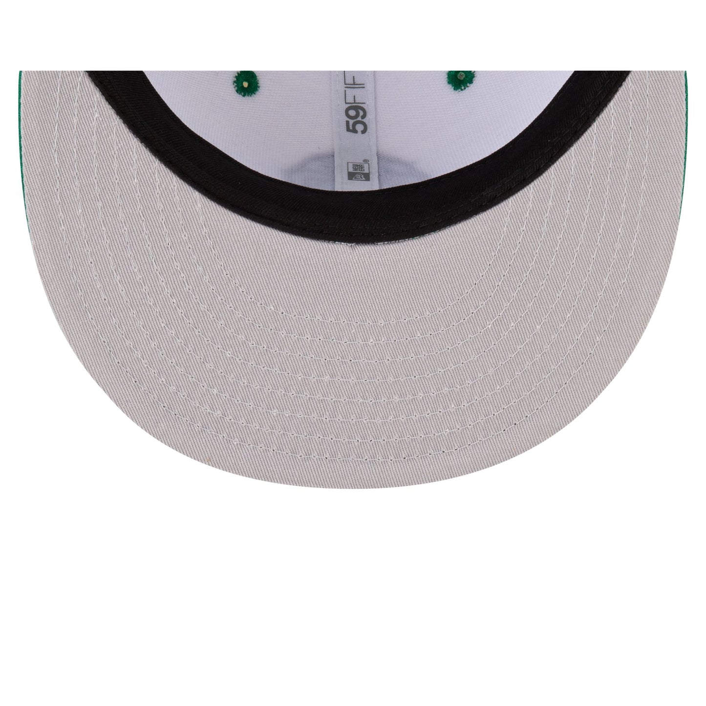The Minnesota Wild Mascot 59FIFTY Fitted Cap features an embroidered Wild mascot at the front panels with team color paneled crown and a gray undervisor. Additional details include a team logo at the right-wear side with a matching NHL Shield at the rear.
